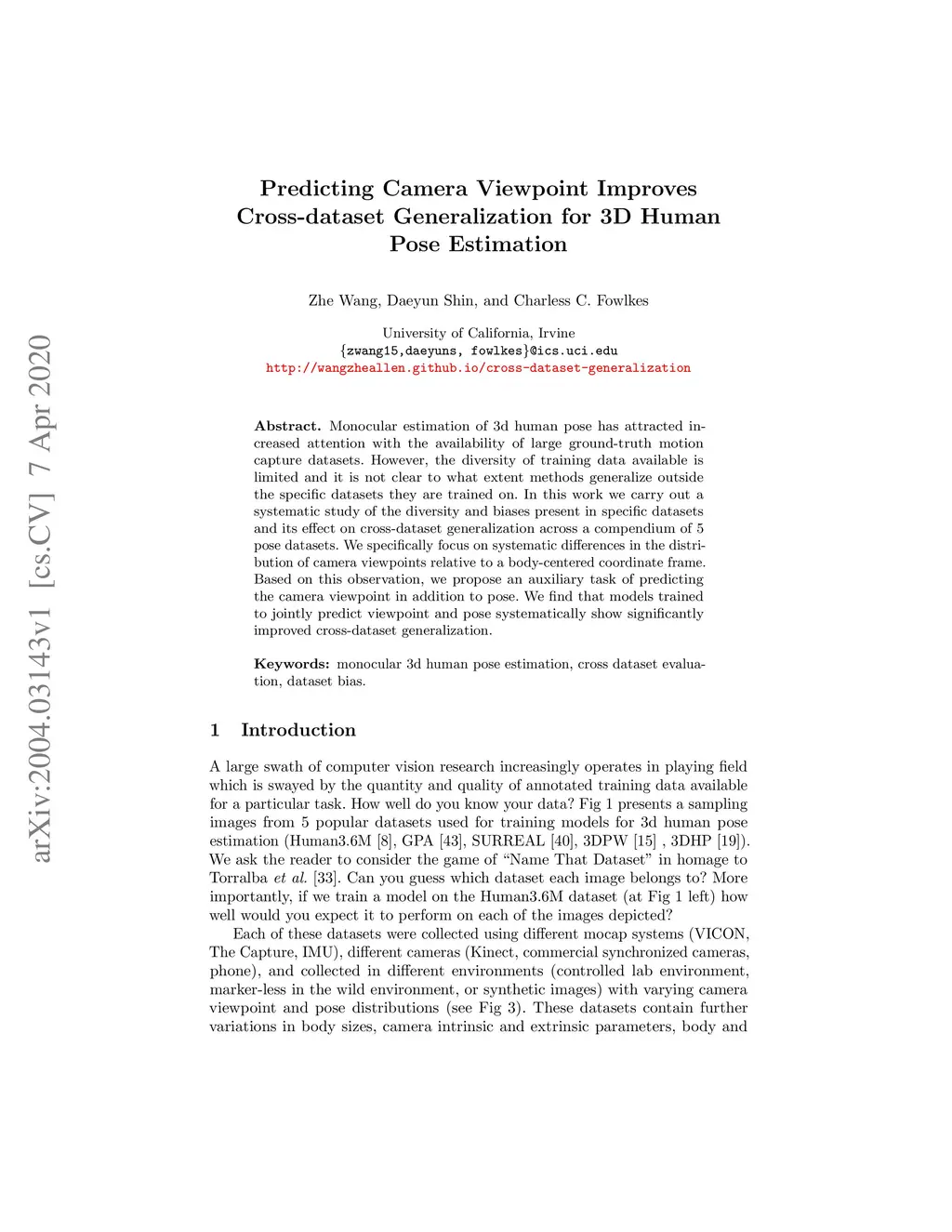Predicting Camera Viewpoint Improves Cross-dataset Generalization for 3D