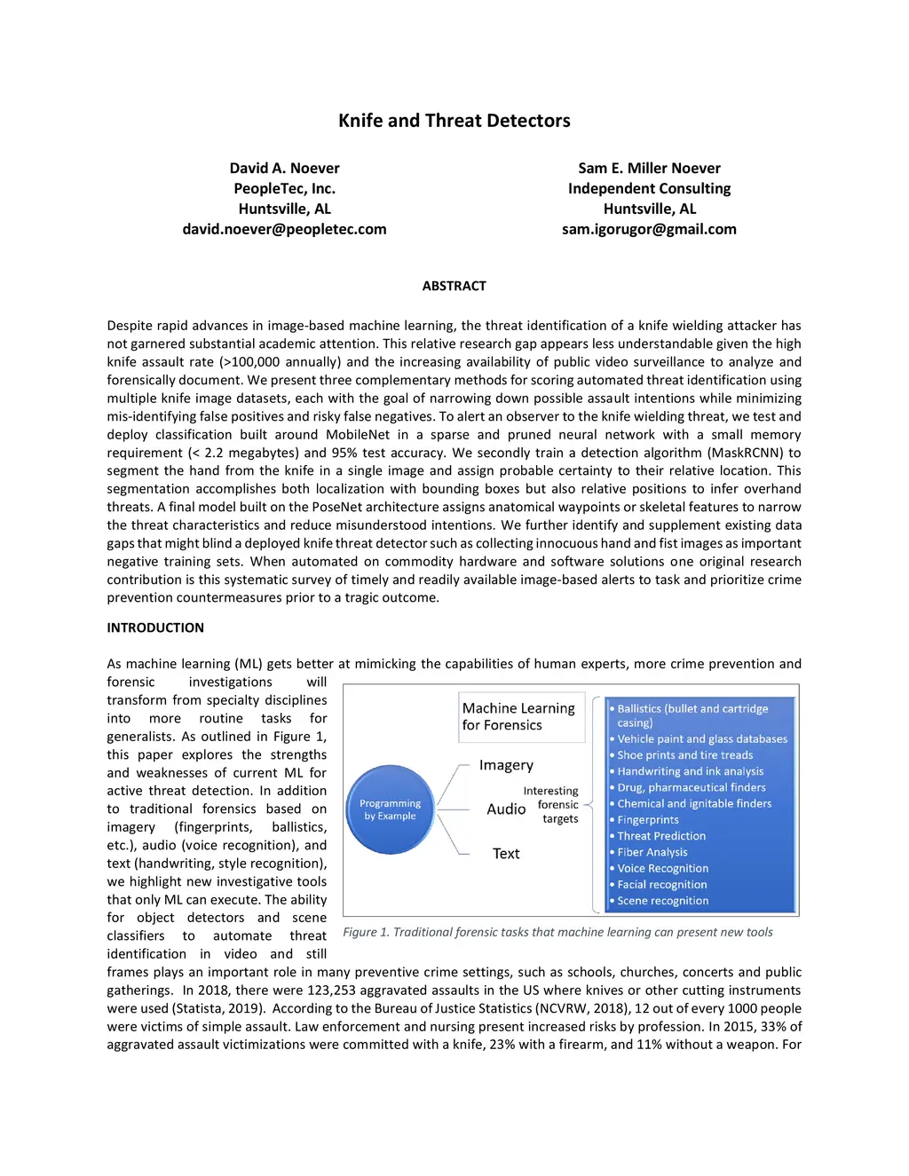 Despite rapid advances in image-based machine learning, the threat identification of a knife wielding attacker has not garnered substantial academic attention. This relative research gap appears less understandable given the high knife assault rate (>100,000 annually) and the increasing availability of public video surveillance to analyze and forensically document. We present three complementary methods for scoring automated threat identification using multiple knife image datasets, each with the goal of narrowing down possible assault intentions while minimizing misidentifying false positives and risky false negatives. To alert an observer to the knife-wielding threat, we test and deploy classification built around MobileNet in a sparse and pruned neural network with a small memory requirement (< 2.2 megabytes) and 95% test accuracy. We secondly train a detection algorithm (MaskRCNN) to segment the hand from the knife in a single image and assign probable certainty to their relative location. This segmentation accomplishes both localization with bounding boxes but also relative positions to infer overhand threats. A final model built on the PoseNet architecture assigns anatomical waypoints or skeletal features to narrow the threat characteristics and reduce misunderstood intentions. We further identify and supplement existing data gaps that might blind a deployed knife threat detector such as collecting innocuous hand and fist images as important negative training sets. When automated on commodity hardware and software solutions one original research contribution is this systematic survey of timely and readily available image-based alerts to task and prioritize crime prevention countermeasures prior to a tragic outcome.