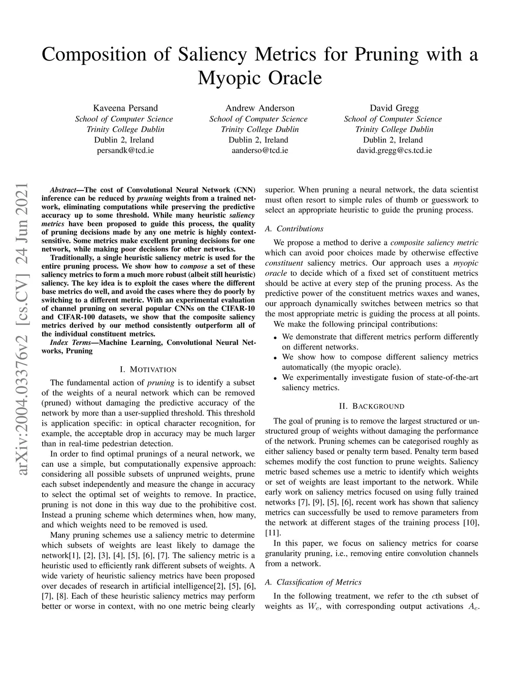 Composition of Saliency Metrics for Channel Pruning with a Myopic Oracle