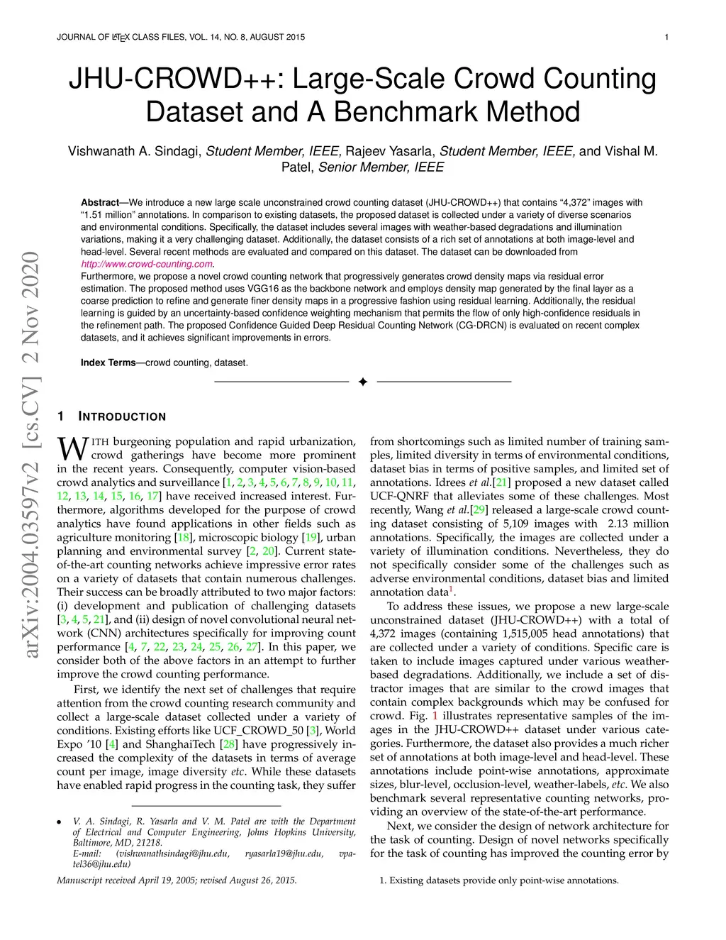 JHU-CROWD++: Large-Scale Crowd Counting Dataset and A Benchmark Method