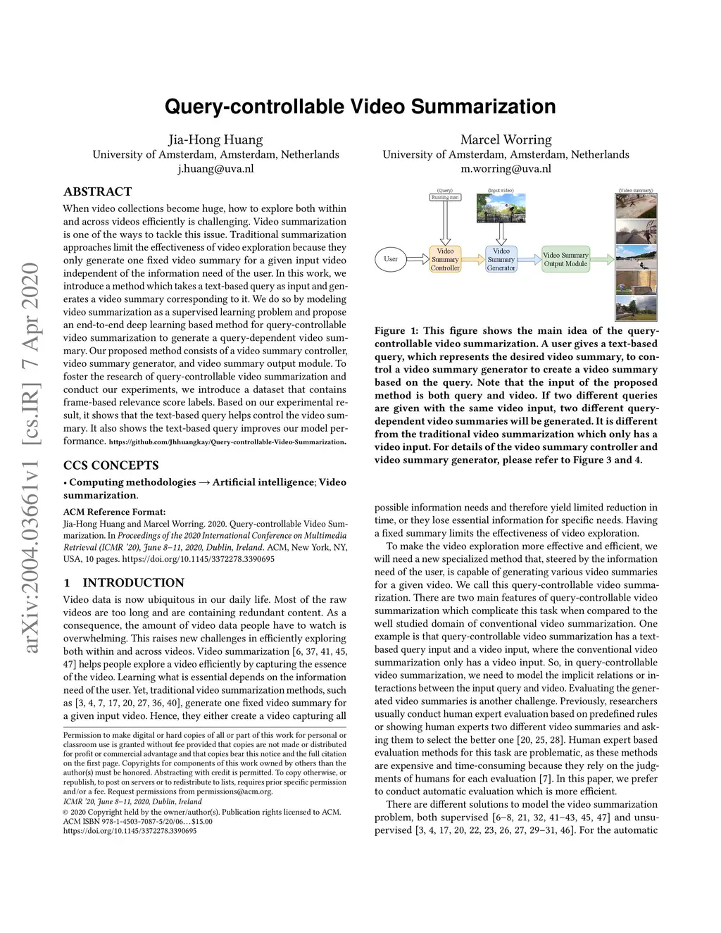 Query-controllable Video Summarization