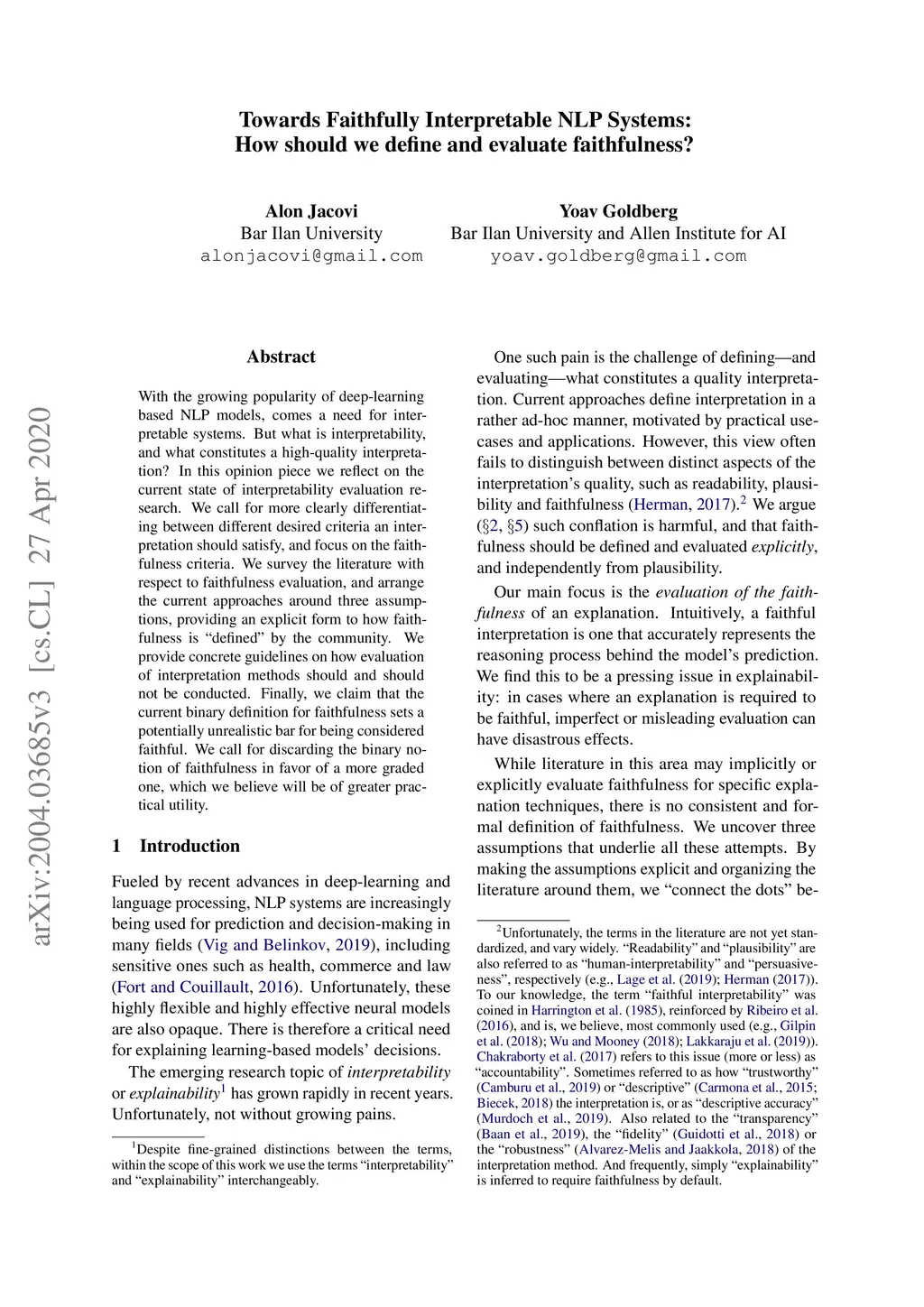 Towards Faithfully Interpretable NLP Systems: How should we define and