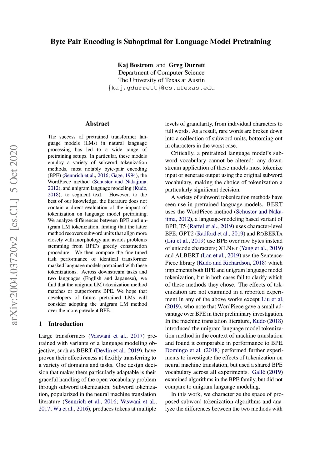 Byte Pair Encoding is Suboptimal for Language Model Pretraining