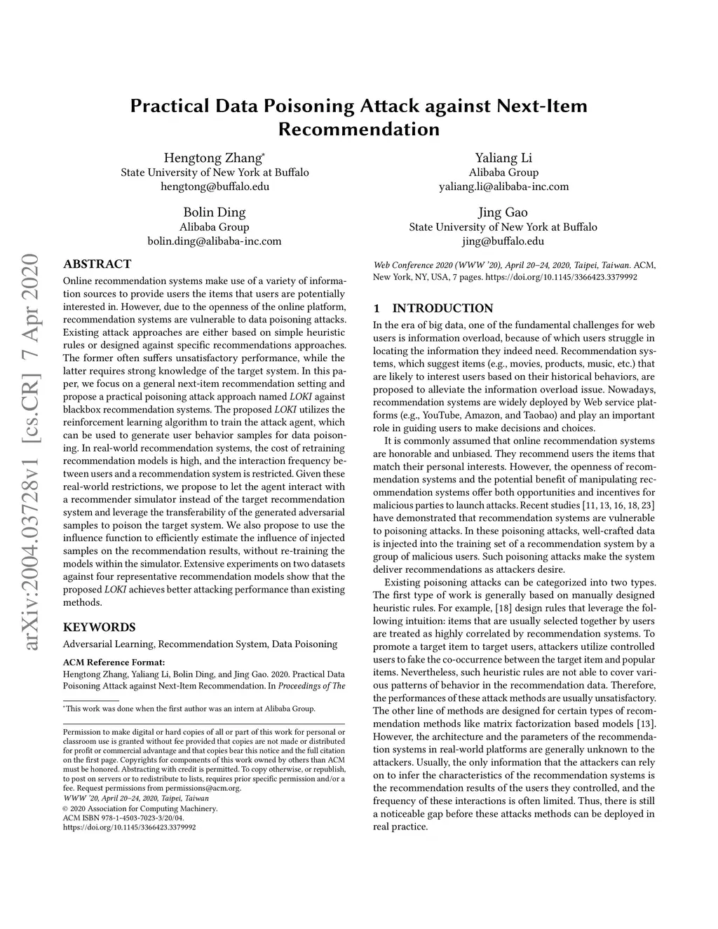Online recommendation systems make use of a variety of information sources to provide users the items that users are potentially interested in. However, due to the openness of the online platform, recommendation systems are vulnerable to data poisoning attacks. Existing attack approaches are either based on simple heuristic rules or designed against specific recommendations approaches. The former often suffers unsatisfactory performance, while the latter requires strong knowledge of the target system. In this paper, we focus on a general next-item recommendation setting and propose a practical poisoning attack approach named LOKI against blackbox recommendation systems. The proposed LOKI utilizes the reinforcement learning algorithm to train the attack agent, which can be used to generate user behavior samples for data poisoning. In real-world recommendation systems, the cost of retraining recommendation models is high, and the interaction frequency between users and a recommendation system is restricted.Given these real-world restrictions, we propose to let the agent interact with a recommender simulator instead of the target recommendation system and leverage the transferability of the generated adversarial samples to poison the target system. We also propose to use the influence function to efficiently estimate the influence of injected samples on the recommendation results, without re-training the models within the simulator. Extensive experiments on two datasets against four representative recommendation models show that the proposed LOKI achieves better attacking performance than existing methods.