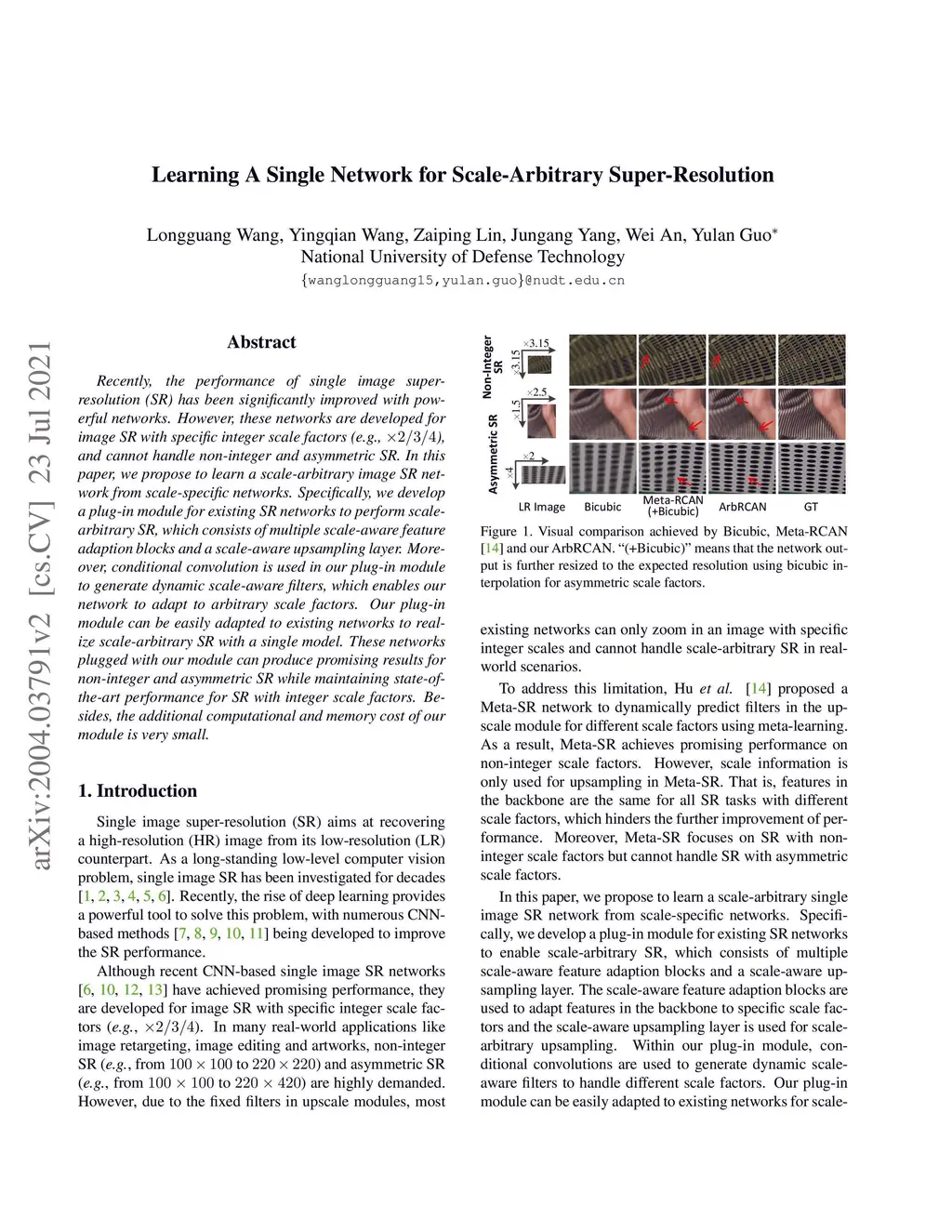 Learning A Single Network for Scale-Arbitrary Super-Resolution
