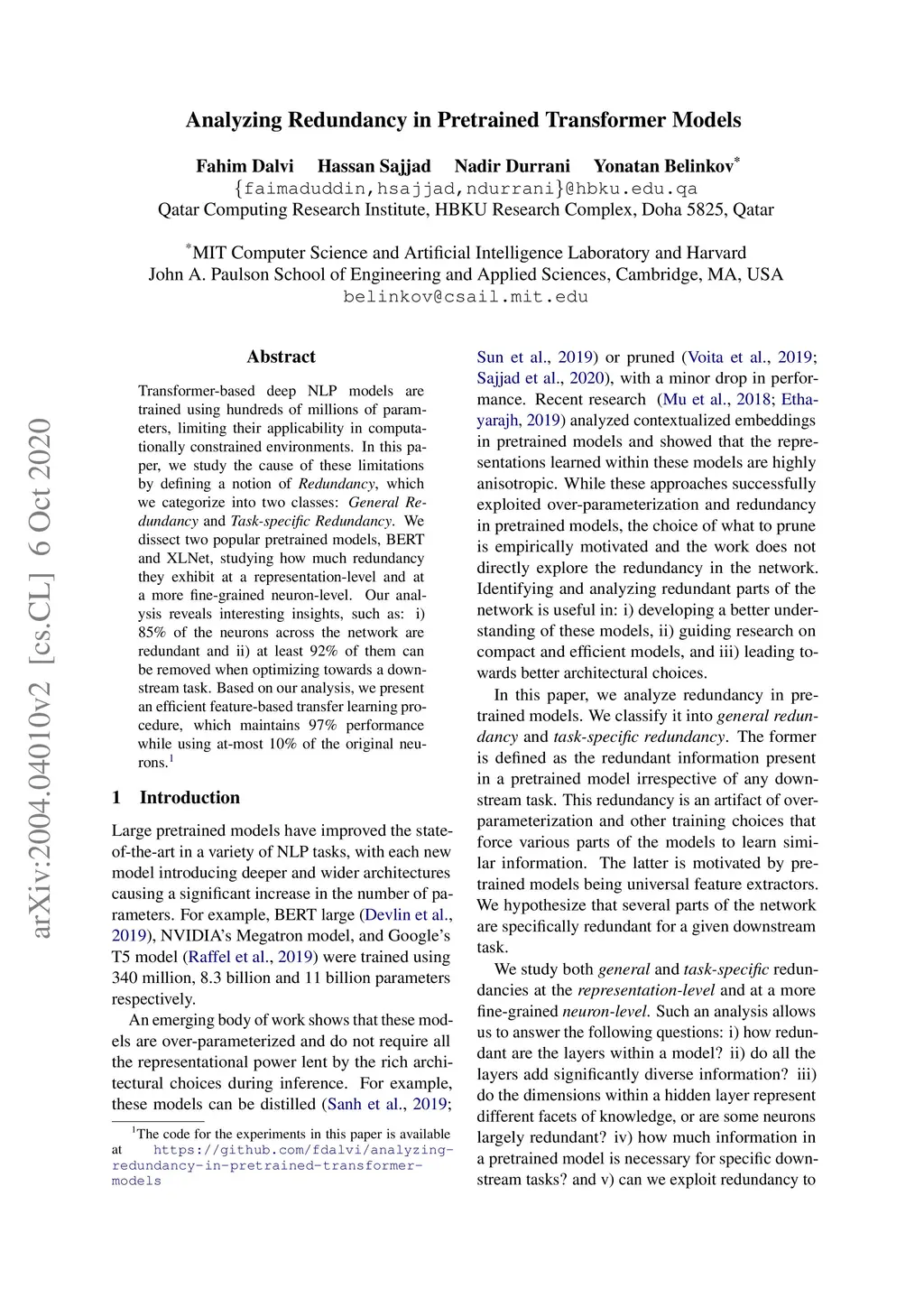 Analyzing Redundancy in Pretrained Transformer Models