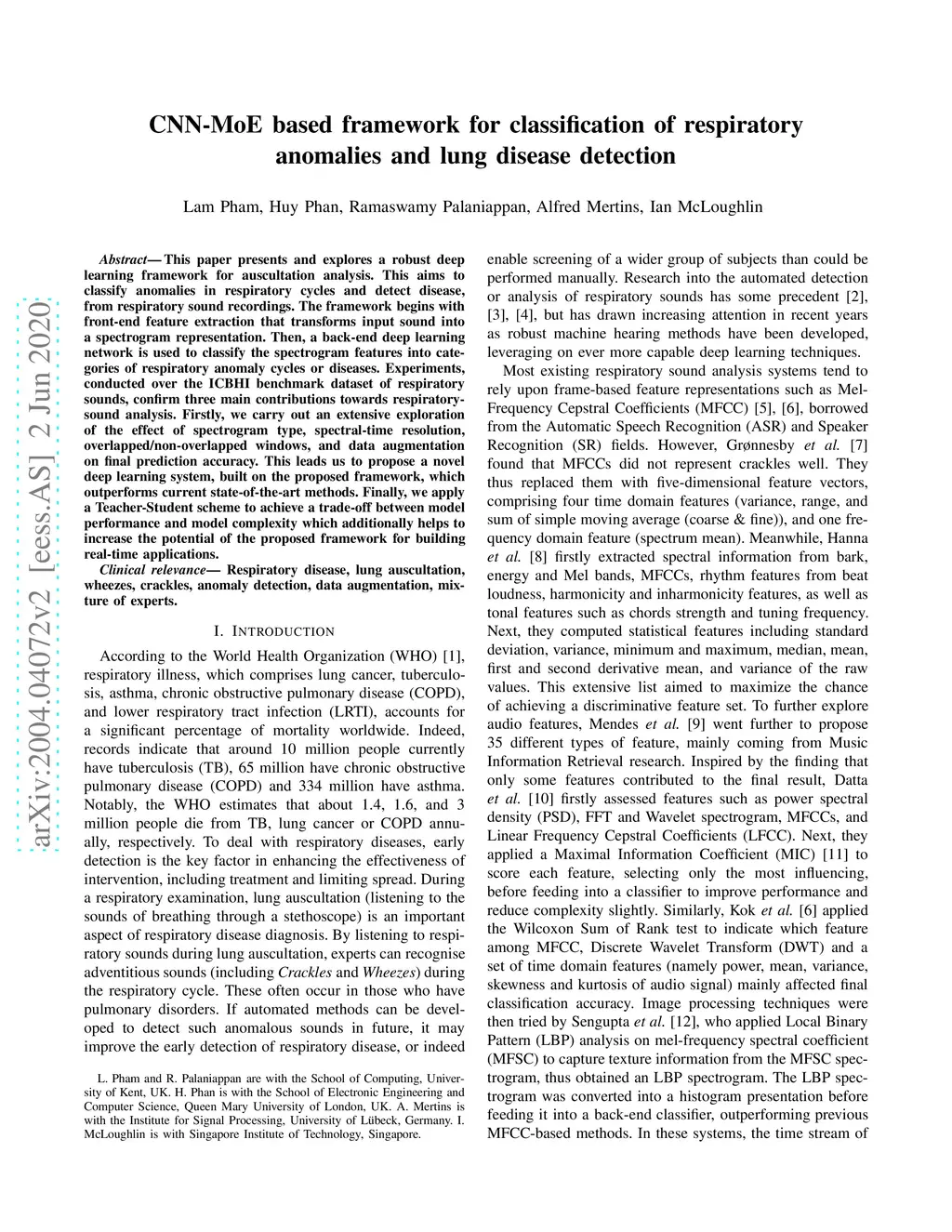 This paper presents and explores a robust deep learning framework for auscultation analysis. This aims to classify anomalies in respiratory cycles and detect disease, from respiratory sound recordings. The framework begins with front-end feature extraction that transforms input sound into a spectrogram representation. Then, a back-end deep learning network is used to classify the spectrogram features into categories of respiratory anomaly cycles or diseases. Experiments, conducted over the ICBHI benchmark dataset of respiratory sounds, confirm three main contributions towards respiratory-sound analysis. Firstly, we carry out an extensive exploration of the effect of spectrogram type, spectral-time resolution, overlapped/non-overlapped windows, and data augmentation on final prediction accuracy. This leads us to propose a novel deep learning system, built on the proposed framework, which outperforms current state-of-the-art methods. Finally, we apply a Teacher-Student scheme to achieve a trade-off between model performance and model complexity which additionally helps to increase the potential of the proposed framework for building real-time applications.