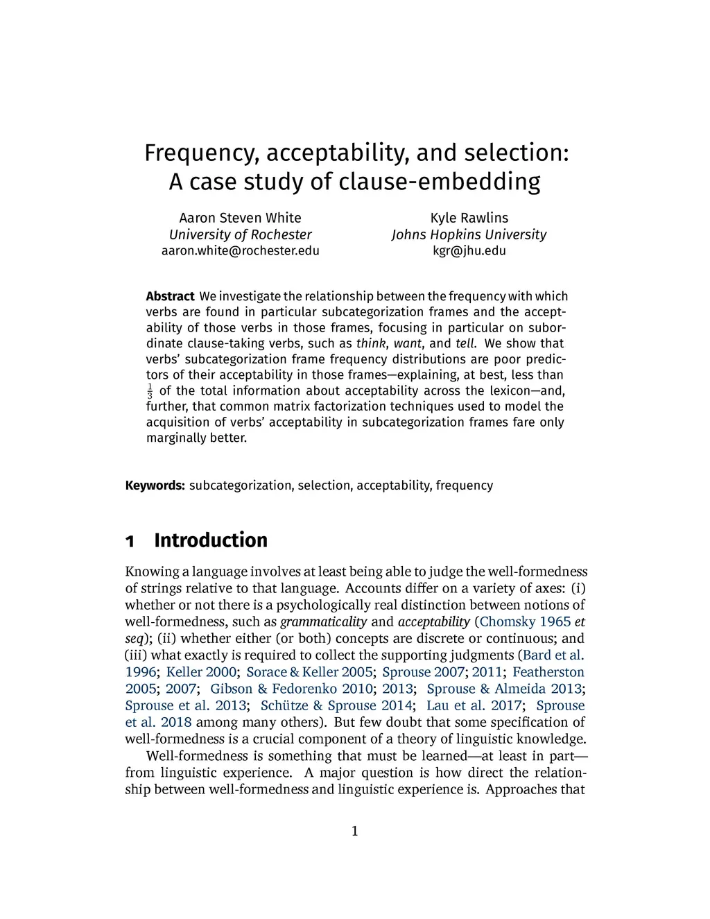 Frequency, Acceptability, and Selection: A case study of