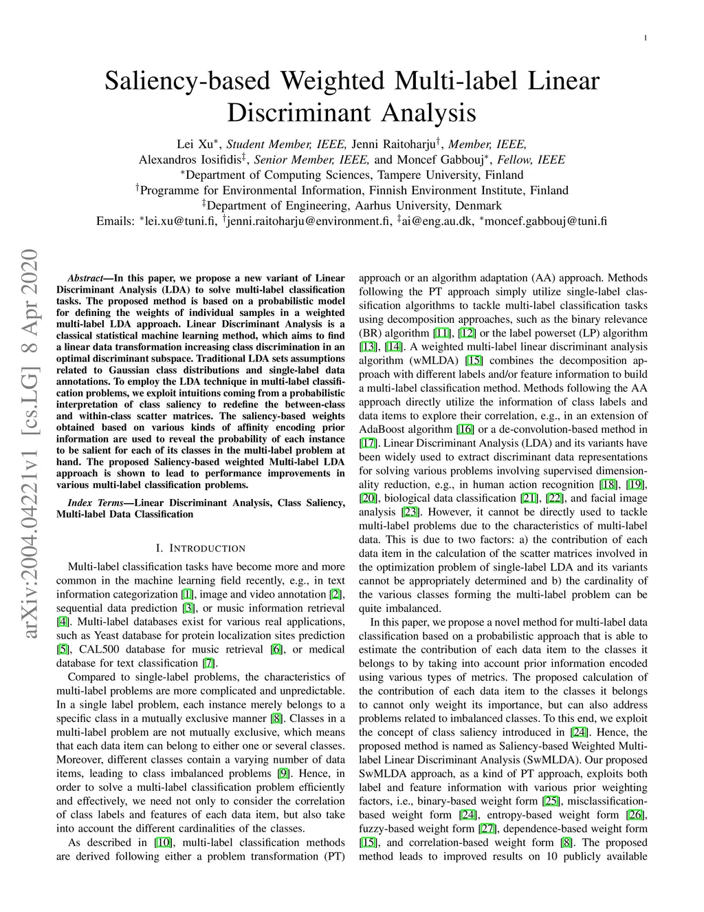 Saliency-based Weighted Multi-label Linear Discriminant Analysis