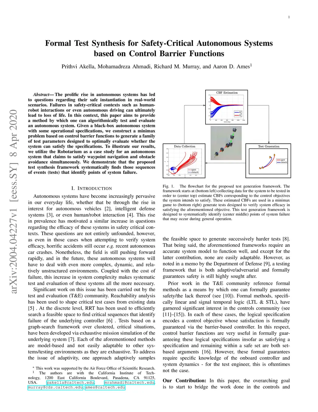 The prolific rise in autonomous systems has led to questions regarding their safe instantiation in real-world scenarios. Failures in safety-critical contexts such as human-robot interactions or even autonomous driving can ultimately lead to loss of life. In this context, this paper aims to provide a method by which one can algorithmically test and evaluate an autonomous system. Given a black-box autonomous system with some operational specifications, we construct a minimax problem based on control barrier functions to generate a family of test parameters designed to optimally evaluate whether the system can satisfy the specifications. To illustrate our results, we utilize the Robotarium as a case study for an autonomous system that claims to satisfy waypoint navigation and obstacle avoidance simultaneously. We demonstrate that the proposed test synthesis framework systematically finds those sequences of events (tests) that identify points of system failure.