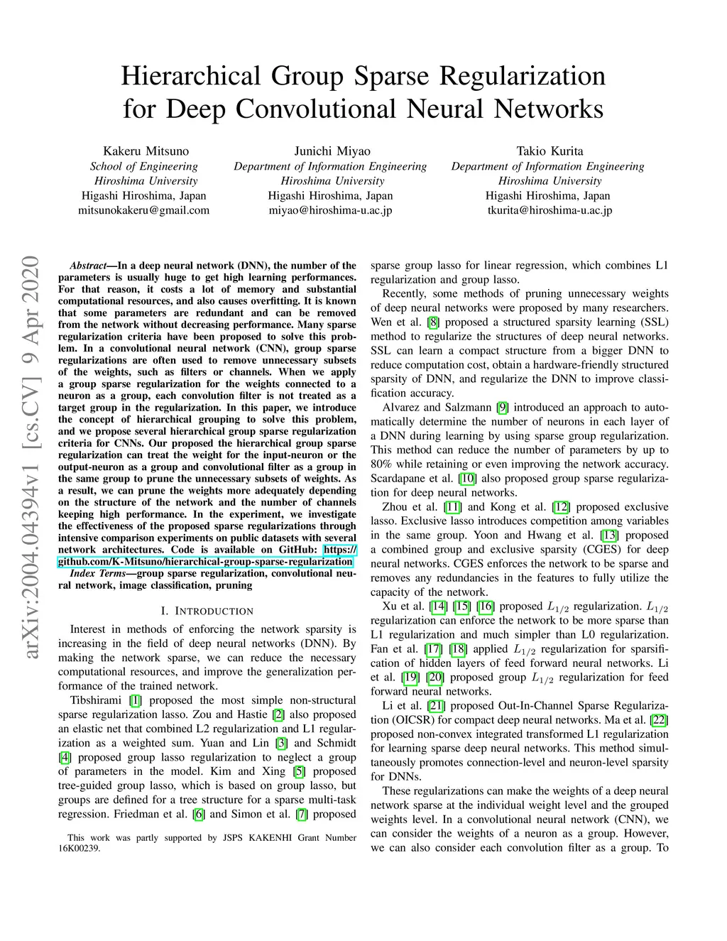 Hierarchical Group Sparse Regularization for Deep Convolutional Neural