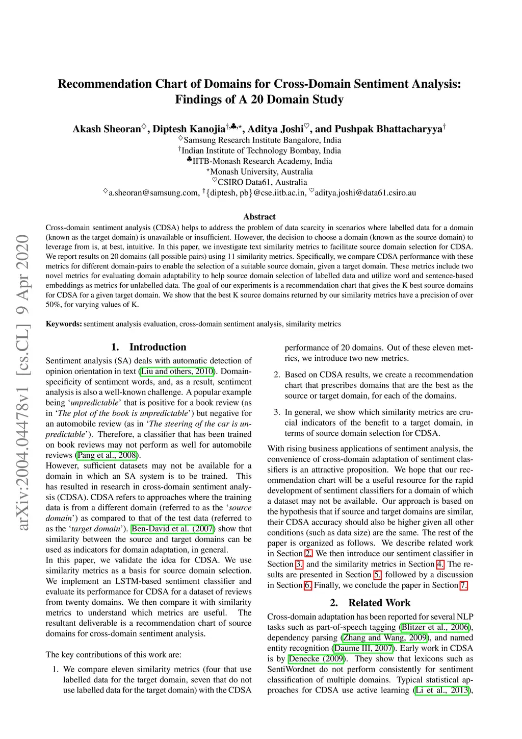 Recommendation Chart of Domains for Cross-Domain Sentiment