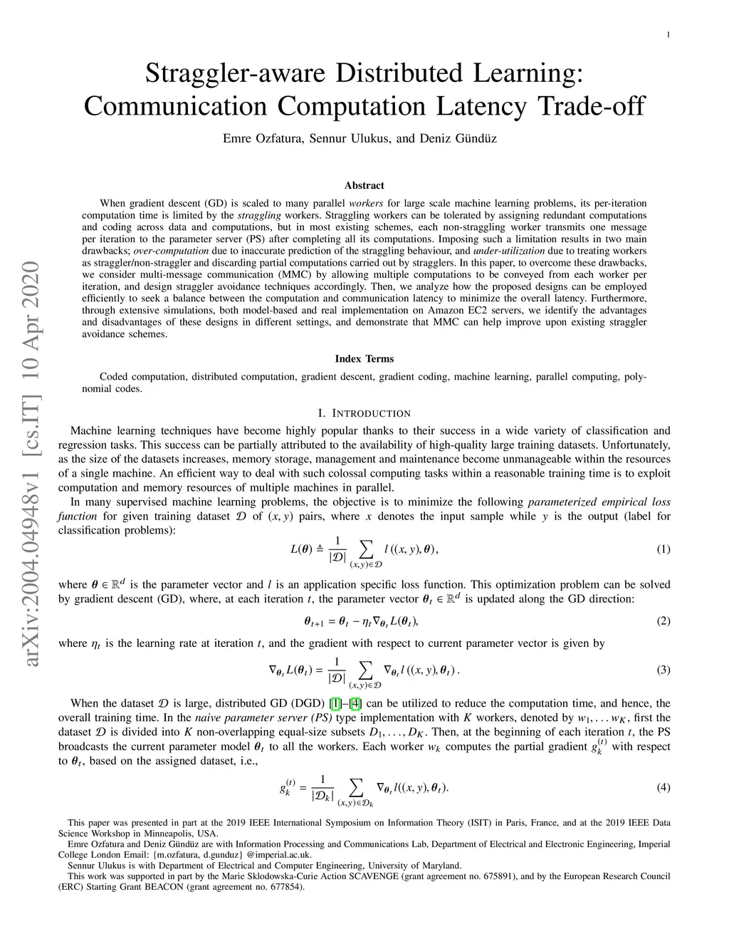 Straggler-aware Distributed Learning: Communication Computation Latency