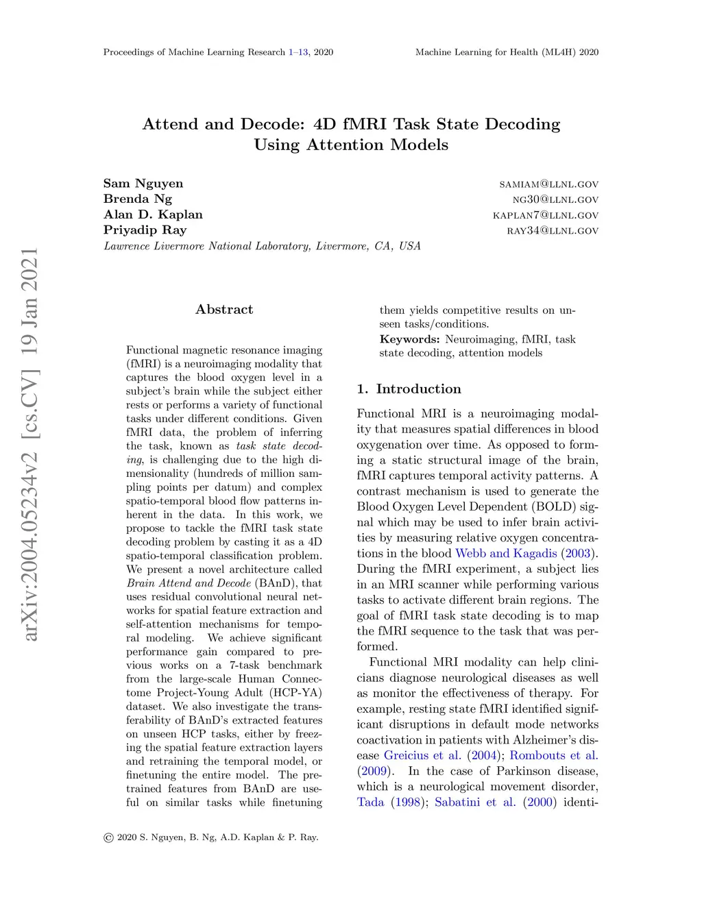 Attend and Decode: 4D fMRI Task State Decoding Using Attention Models