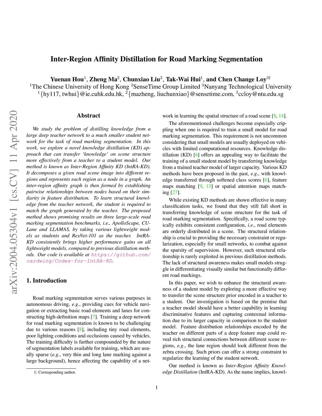 Inter-Region Affinity Distillation for Road Marking Segmentation