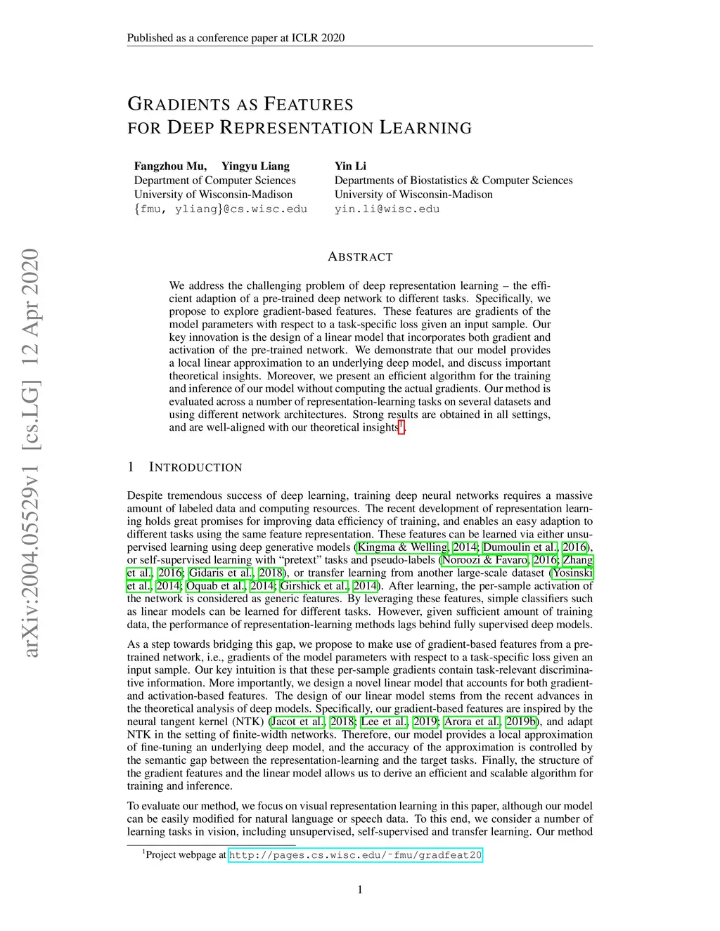 Gradients as Features for Deep Representation Learning