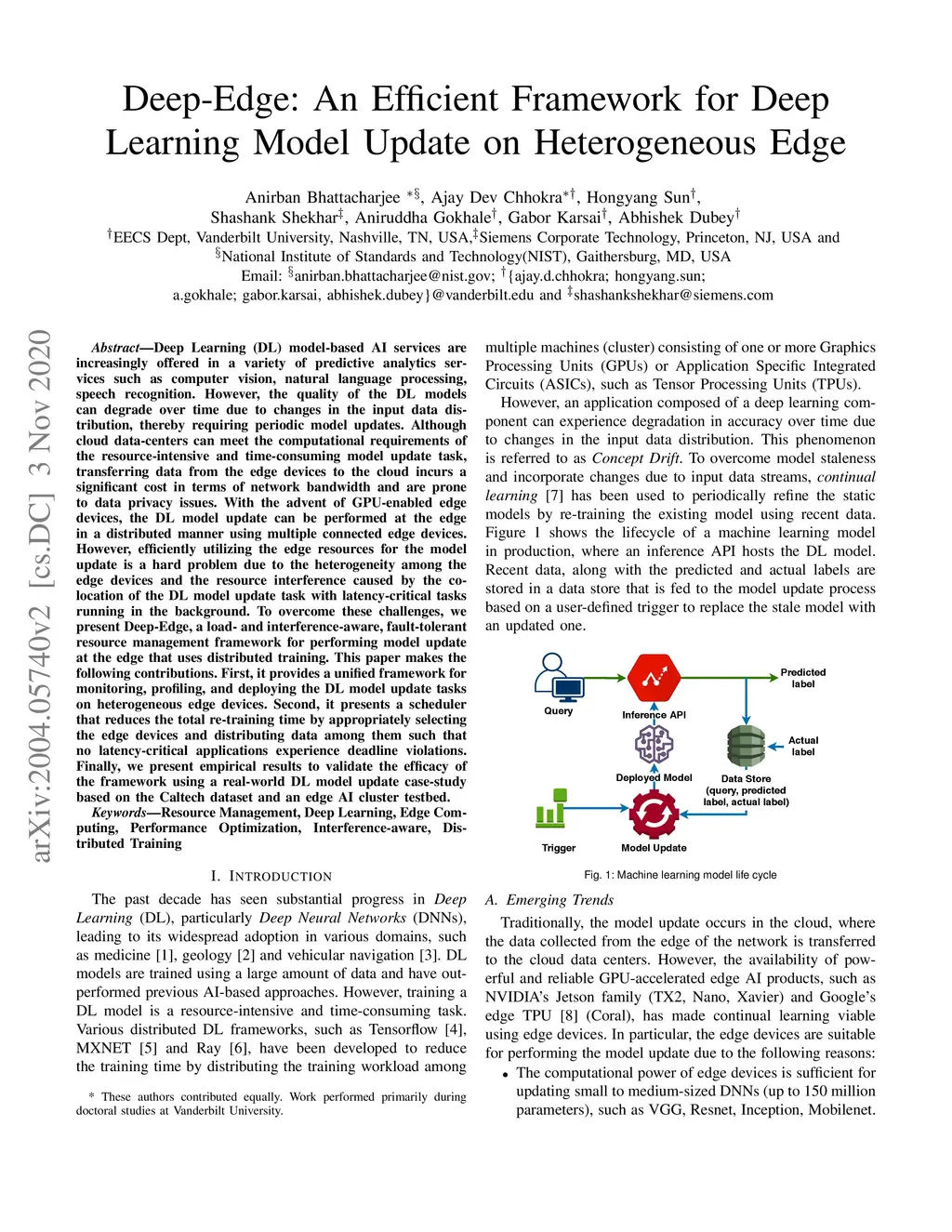Deep-Edge: An Efficient Framework for Deep Learning Model Update on