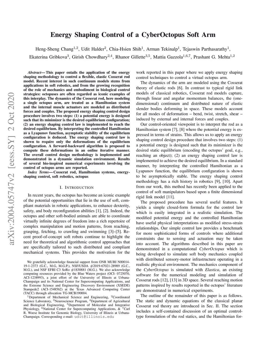 Energy Shaping Control of a CyberOctopus Soft Arm