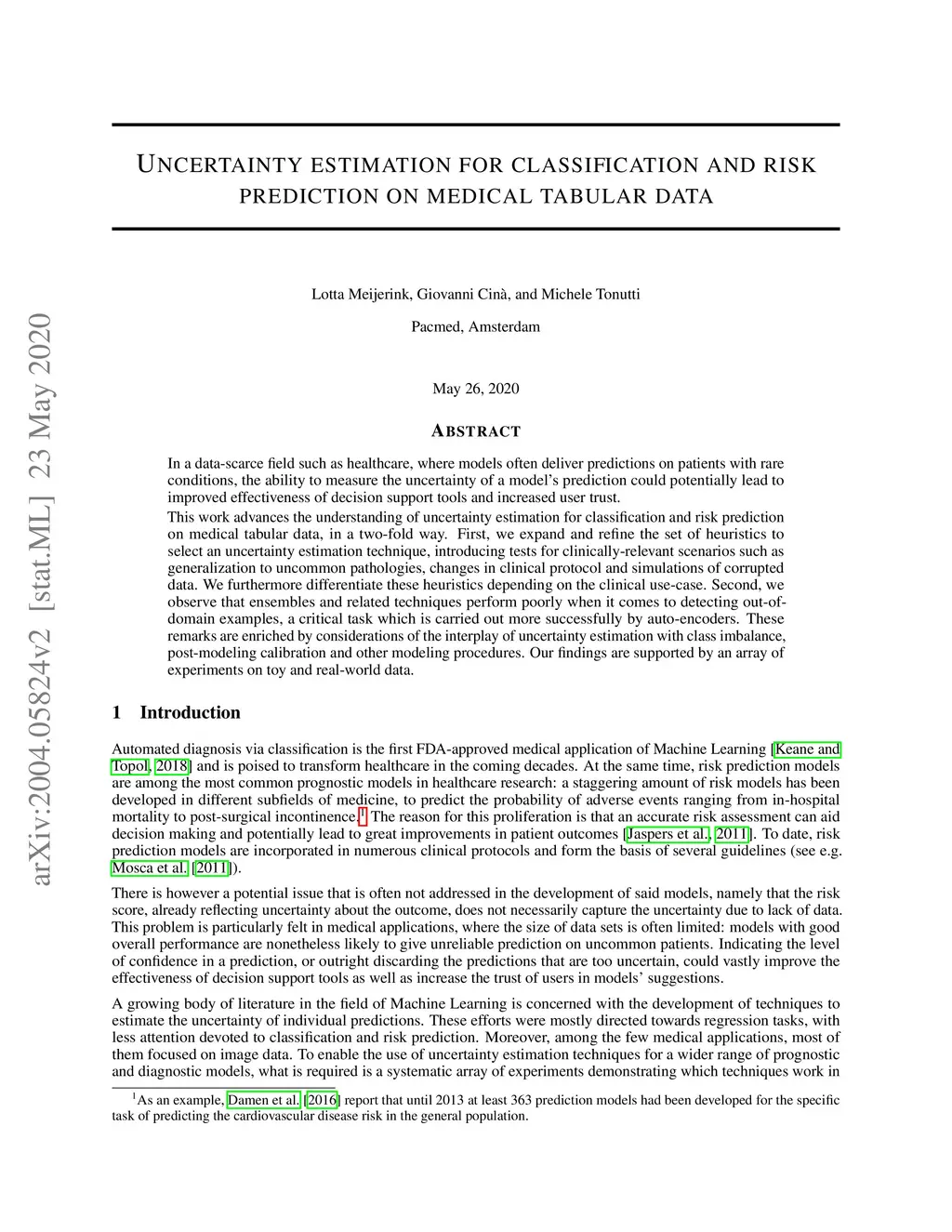 Uncertainty estimation for classification and risk prediction on medical