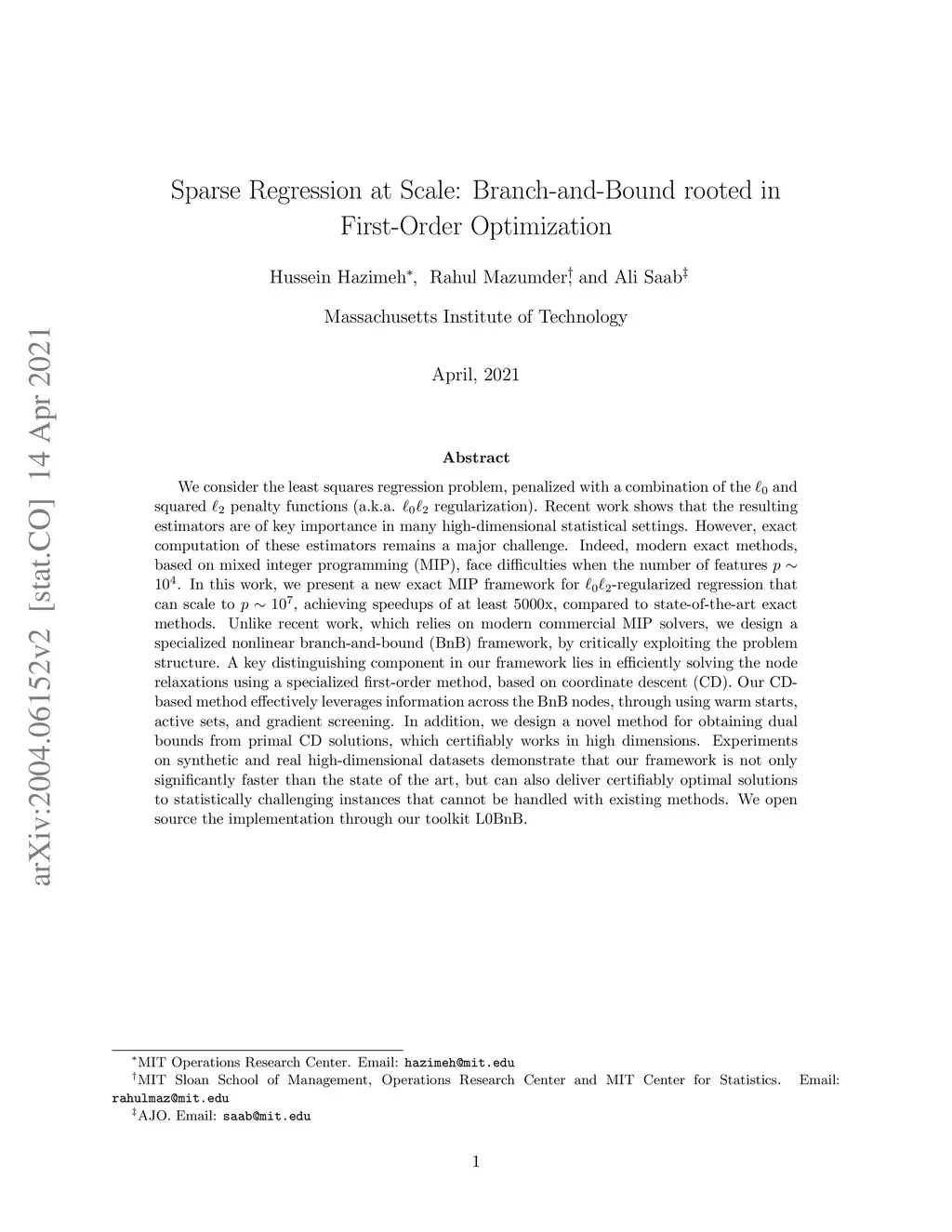 Sparse Regression at Scale: Branch-and-Bound rooted in First-Order