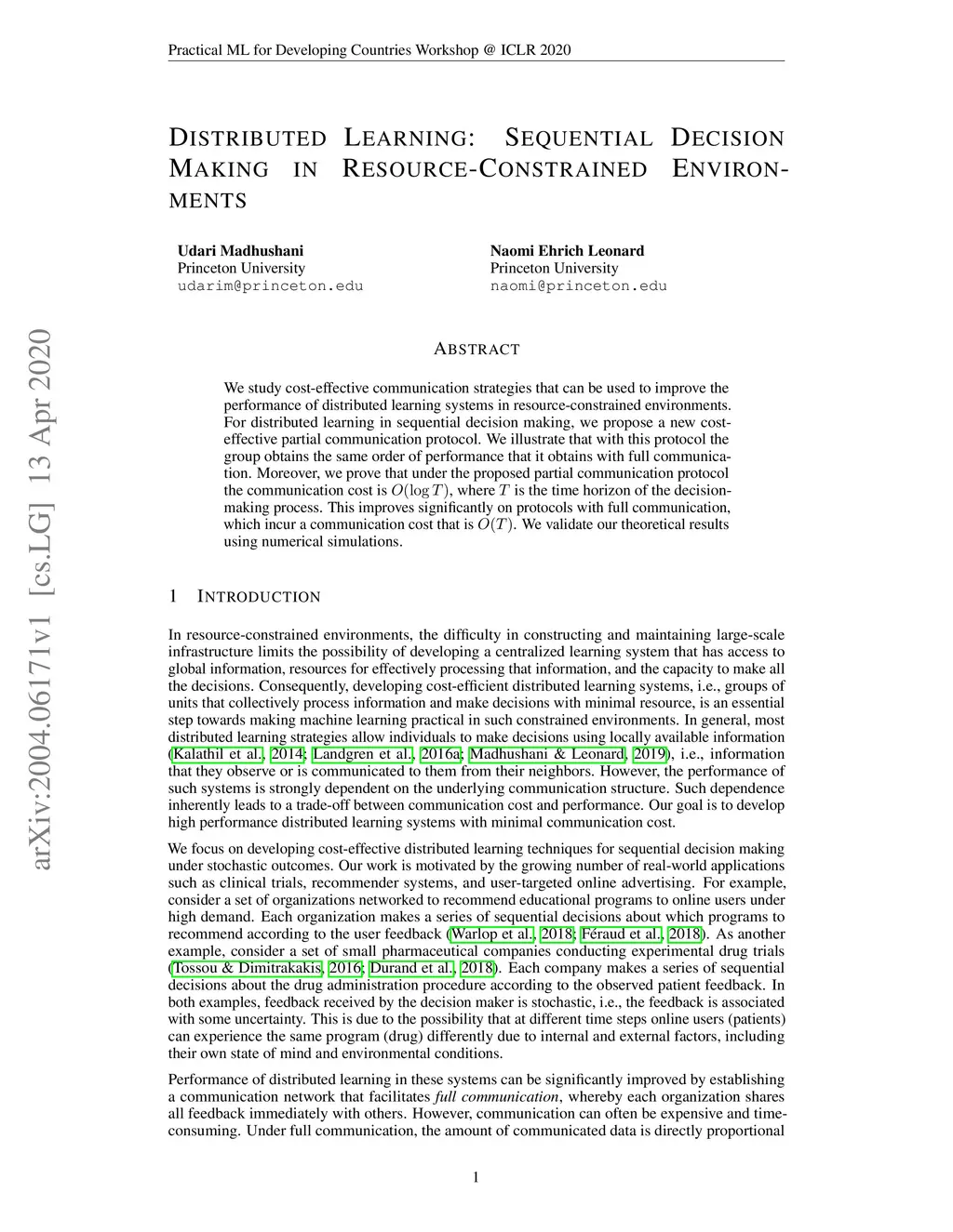 Distributed Learning: Sequential Decision Making in Resource-Constrained