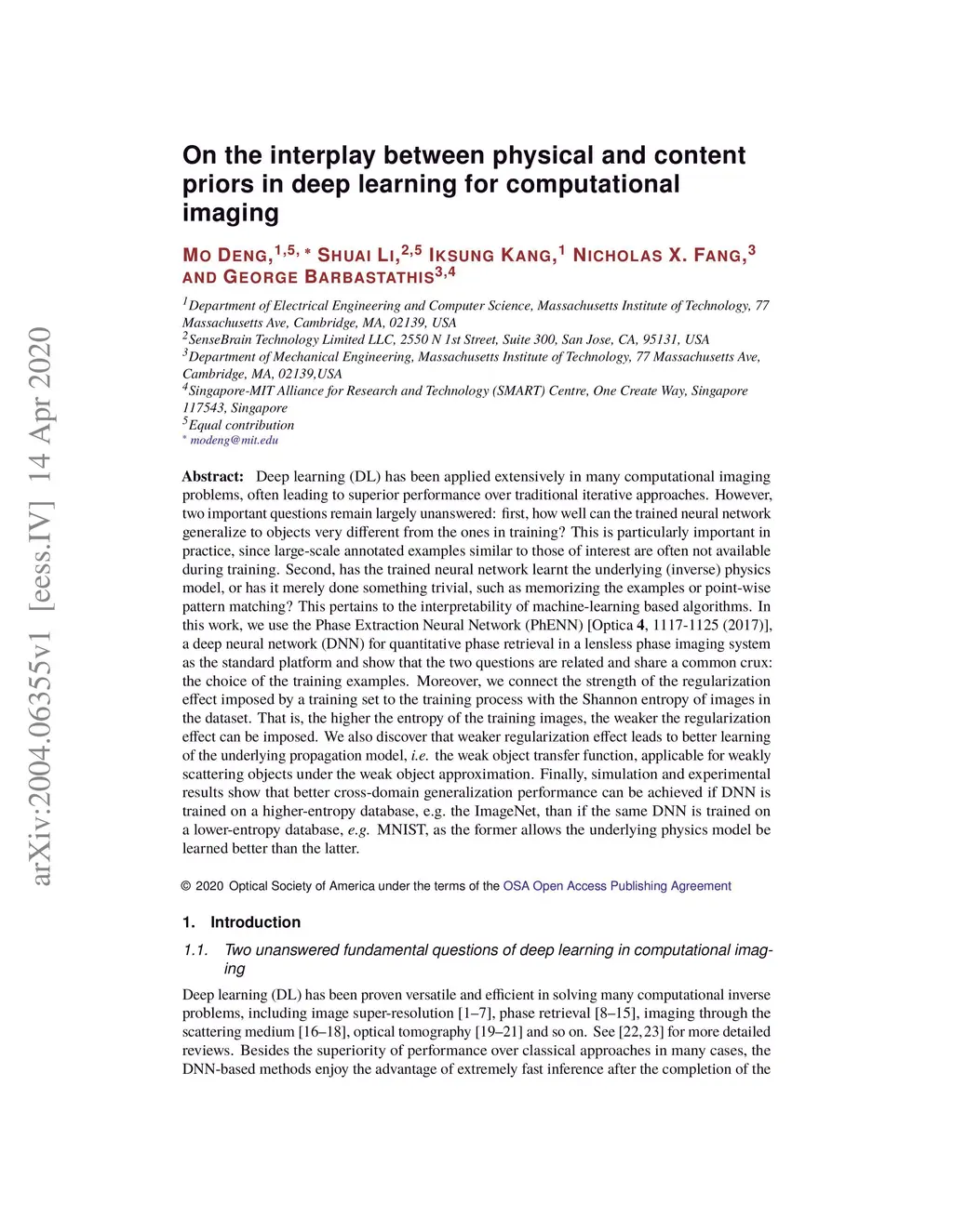 Deep learning (DL) has been applied extensively in many computational imaging problems, often leading to superior performance over traditional iterative approaches. However, two important questions remain largely unanswered: first, how well can the trained neural network generalize to objects very different from the ones in training? This is particularly important in practice, since large-scale annotated examples similar to those of interest are often not available during training. Second, has the trained neural network learnt the underlying (inverse) physics model, or has it merely done something trivial, such as memorizing the examples or point-wise pattern matching? This pertains to the interpretability of machine-learning based algorithms. In this work, we use the Phase Extraction Neural Network (PhENN), a deep neural network (DNN) for quantitative phase retrieval in a lensless phase imaging system as the standard platform and show that the two questions are related and share a common crux: the choice of the training examples. Moreover, we connect the strength of the regularization effect imposed by a training set to the training process with the Shannon entropy of images in the dataset. That is, the higher the entropy of the training images, the weaker the regularization effect can be imposed. We also discover that weaker regularization effect leads to better learning of the underlying propagation model, i.e. the weak object transfer function, applicable for weakly scattering objects under the weak object approximation. Finally, simulation and experimental results show that better cross-domain generalization performance can be achieved if DNN is trained on a higher-entropy database, e.g. the ImageNet, than if the same DNN is trained on a lower-entropy database, e.g. MNIST, as the former allows the underlying physics model be learned better than the latter.