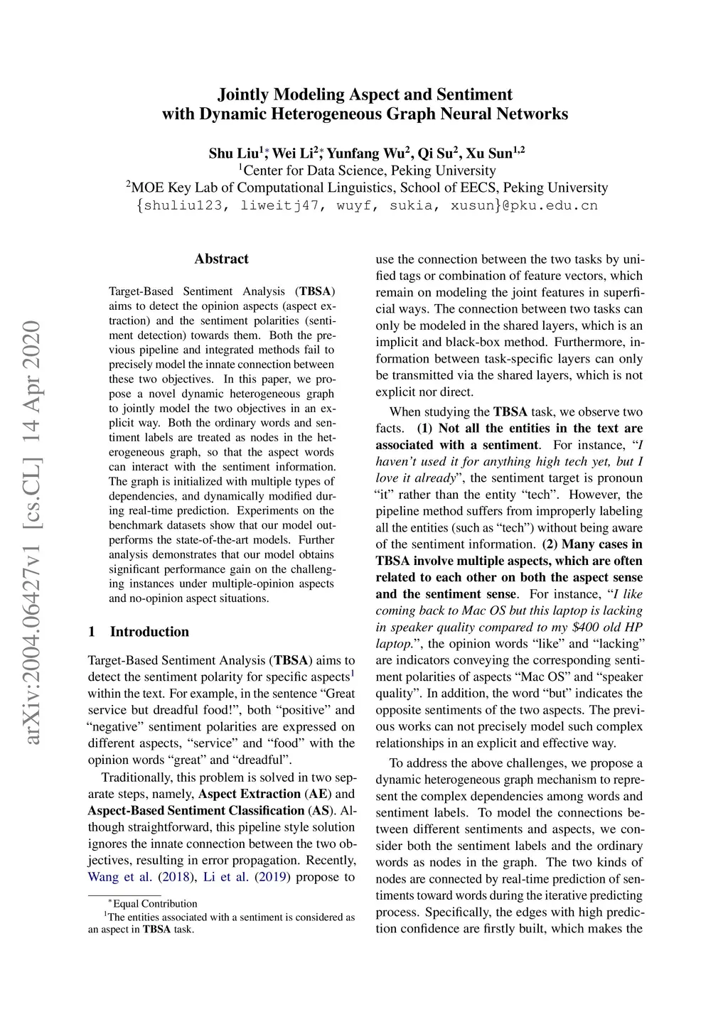 Jointly Modeling Aspect and Sentiment with Dynamic Heterogeneous Graph