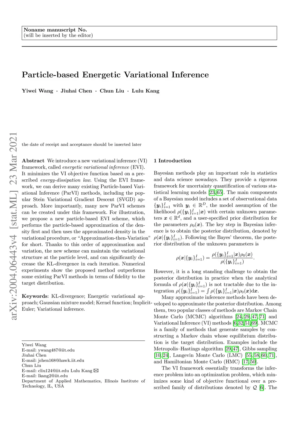 We introduce a new variational inference (VI) framework, called energetic variational inference (EVI). It minimizes the VI object function based on a prescribed energy-dissipation law. Using the EVI framework, we can derive many existing Particle-based Variational Inference (ParVI) methods, including the popular Stein Variational Gradient Descent (SVGD) approach. More importantly, many new ParVI schemes can be created under this framework. For illustration, we propose a new particle-based EVI scheme, which performs the particle-based approximation of the density first and then uses the approximated density in the variational procedure, or "Approximation-then-Variation" for short. Thanks to this order of approximation and variation, the new scheme can maintain the variational structure at the particle level and can significantly decrease the KL-divergence in each iteration. Numerical experiments show the proposed method outperforms some existing ParVI methods in terms of fidelity to the target distribution.