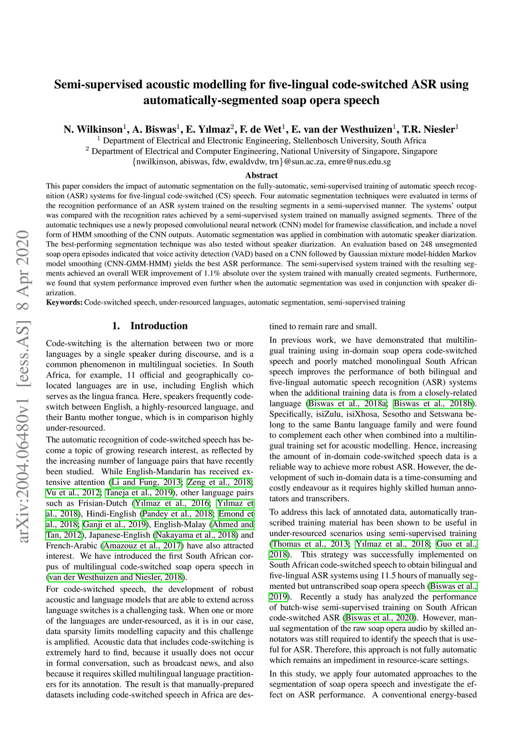 Semi-supervised acoustic modelling for five-lingual code-switched ASR