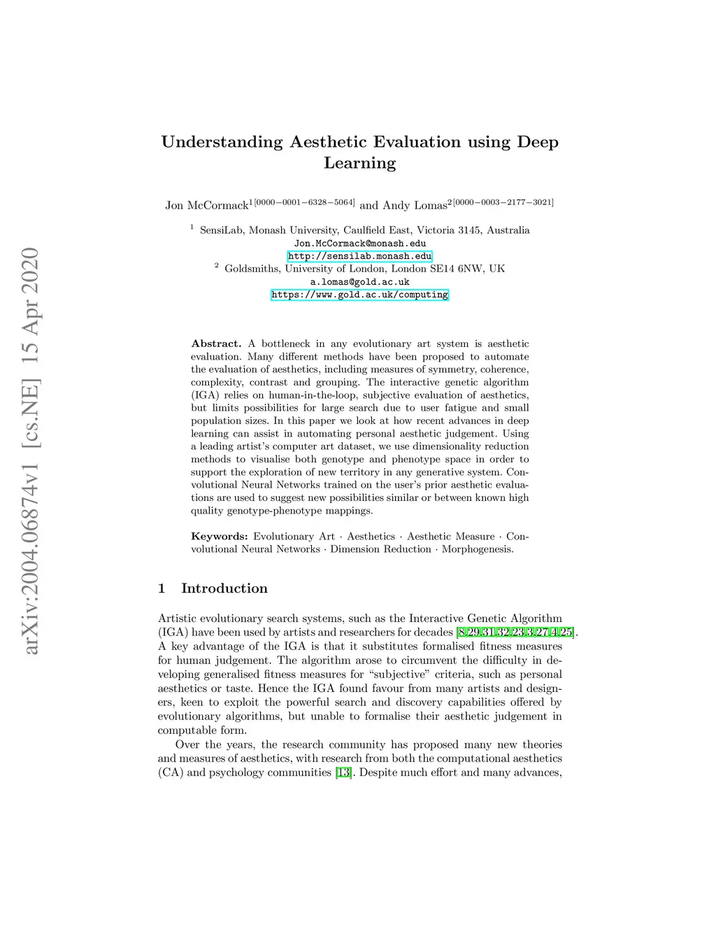 A bottleneck in any evolutionary art system is aesthetic evaluation. Many different methods have been proposed to automate the evaluation of aesthetics, including measures of symmetry, coherence, complexity, contrast and grouping. The interactive genetic algorithm (IGA) relies on human-in-the-loop, subjective evaluation of aesthetics, but limits possibilities for large search due to user fatigue and small population sizes. In this paper we look at how recent advances in deep learning can assist in automating personal aesthetic judgement. Using a leading artist's computer art dataset, we use dimensionality reduction methods to visualise both genotype and phenotype space in order to support the exploration of new territory in any generative system. Convolutional Neural Networks trained on the user's prior aesthetic evaluations are used to suggest new possibilities similar or between known high quality genotype-phenotype mappings.
