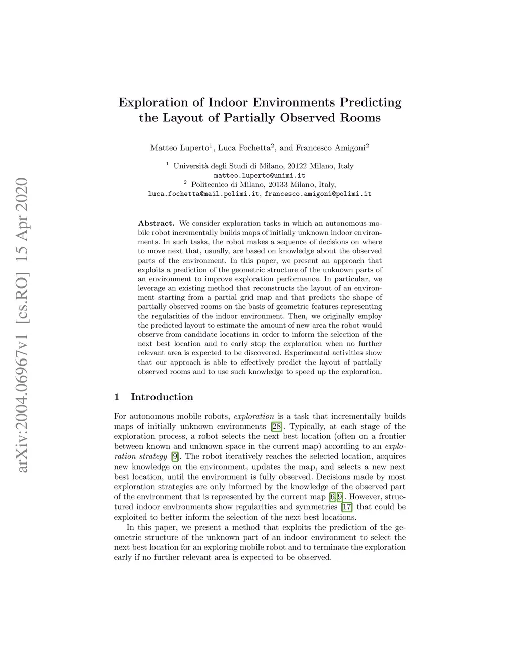Exploration of Indoor Environments Predicting the Layout of Partially