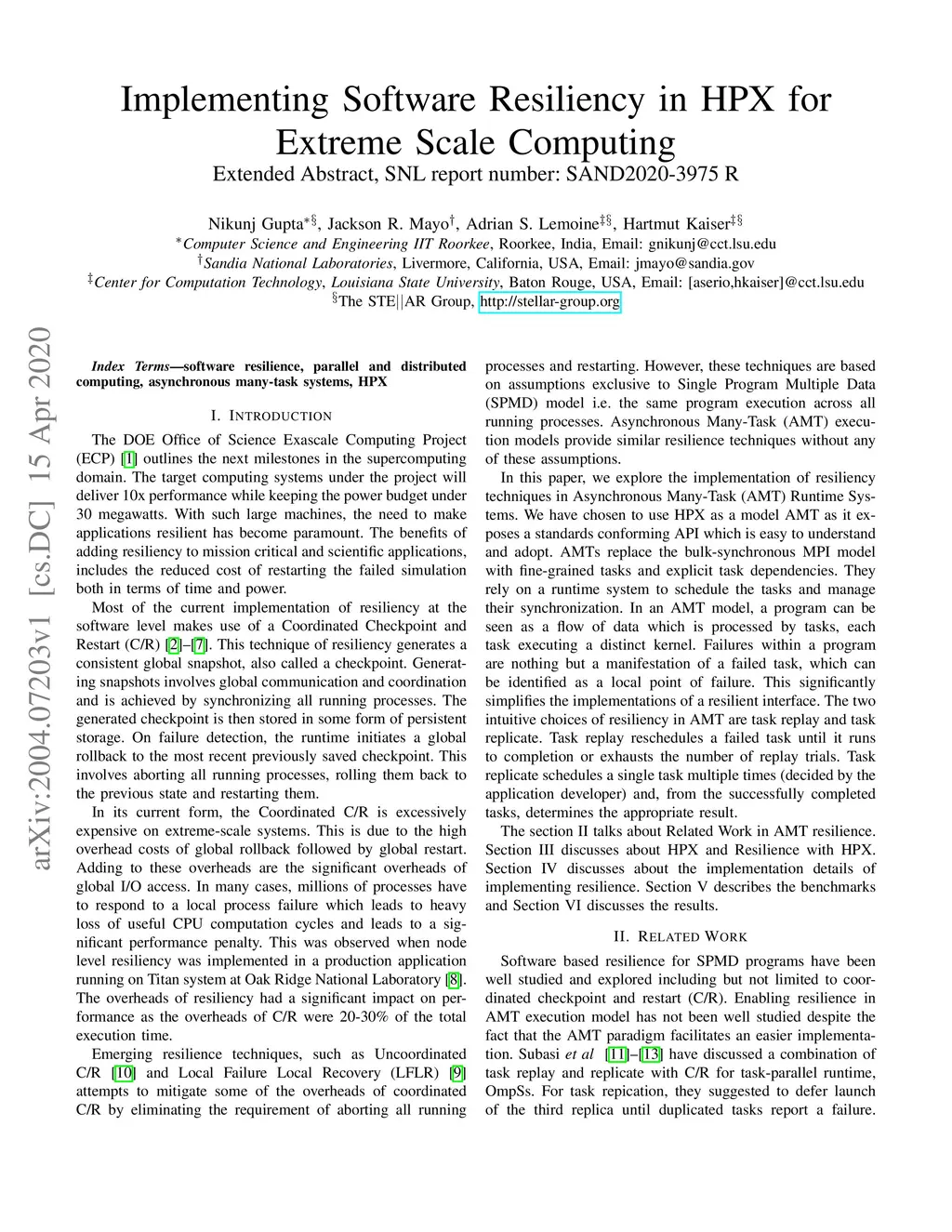 Implementing Software Resiliency in HPX for Extreme Scale Computing