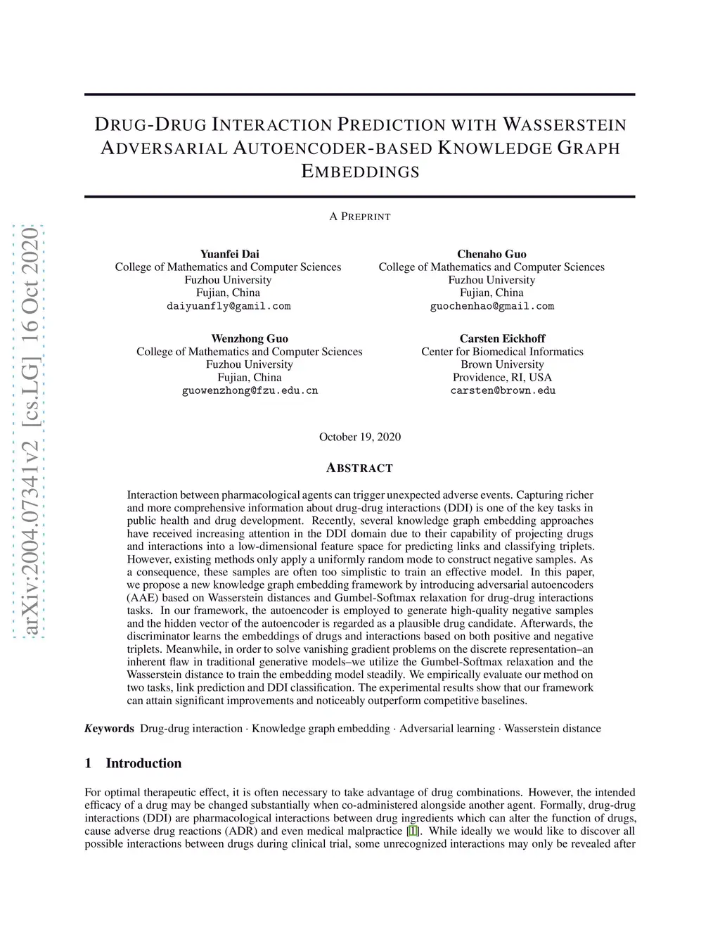Drug-Drug Interaction Prediction with Wasserstein Adversarial