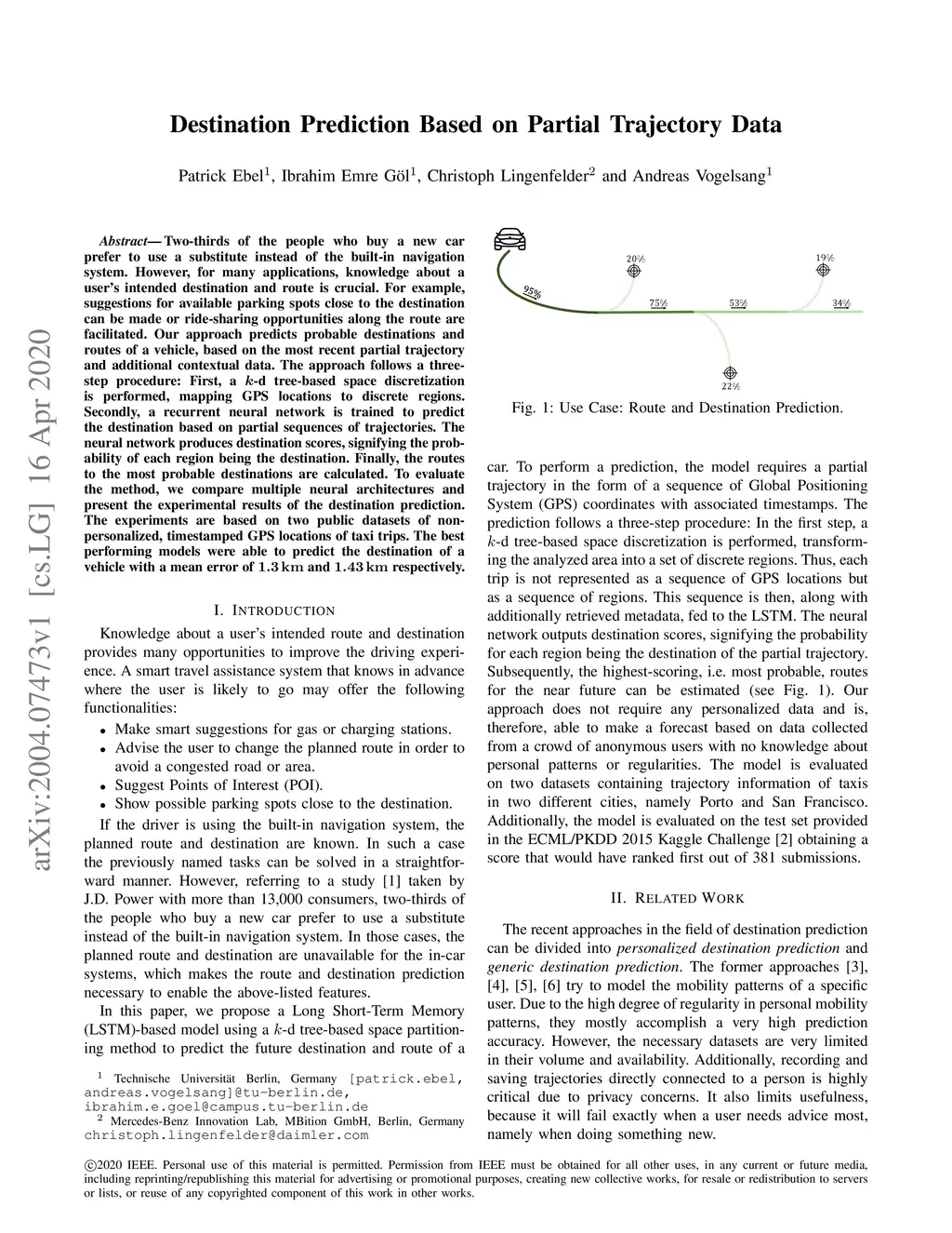 Destination Prediction Based on Partial Trajectory Data