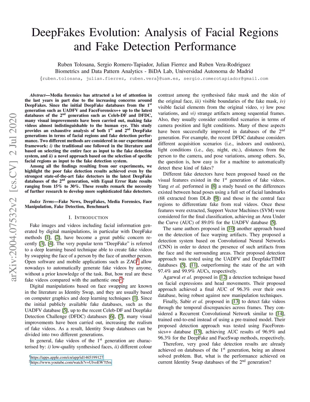 Media forensics has attracted a lot of attention in the last years in part due to the increasing concerns around DeepFakes. Since the initial DeepFake databases from the 1st generation such as UADFV and FaceForensics++ up to the latest databases of the 2nd generation such as Celeb-DF and DFDC, many visual improvements have been carried out, making fake videos almost indistinguishable to the human eye. This study provides an exhaustive analysis of both 1st and 2nd DeepFake generations in terms of facial regions and fake detection performance. Two different methods are considered in our experimental framework: i) the traditional one followed in the literature and based on selecting the entire face as input to the fake detection system, and ii) a novel approach based on the selection of specific facial regions as input to the fake detection system. Among all the findings resulting from our experiments, we highlight the poor fake detection results achieved even by the strongest state-of-the-art fake detectors in the latest DeepFake databases of the 2nd generation, with Equal Error Rate results ranging from 15% to 30%. These results remark the necessity of further research to develop more sophisticated fake detectors.