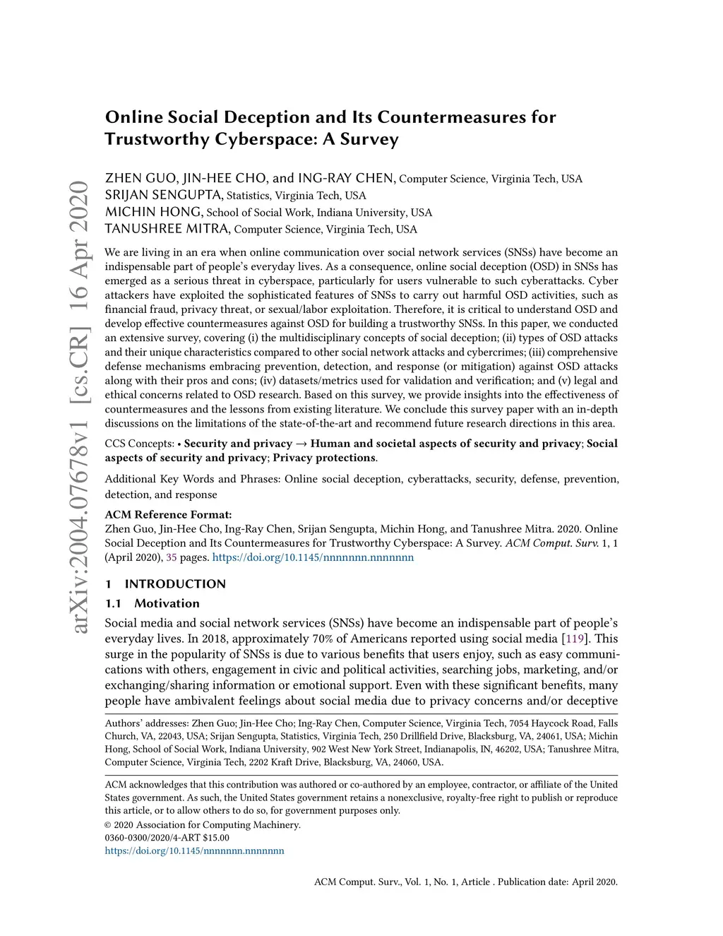 Online Social Deception and Its Countermeasures for Trustworthy