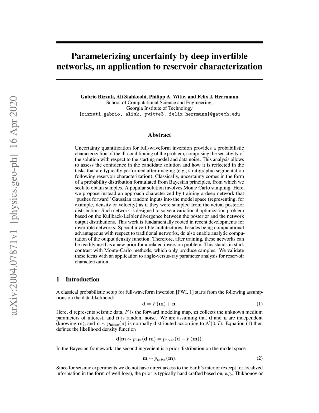 Parameterizing uncertainty by deep invertible networks, an application