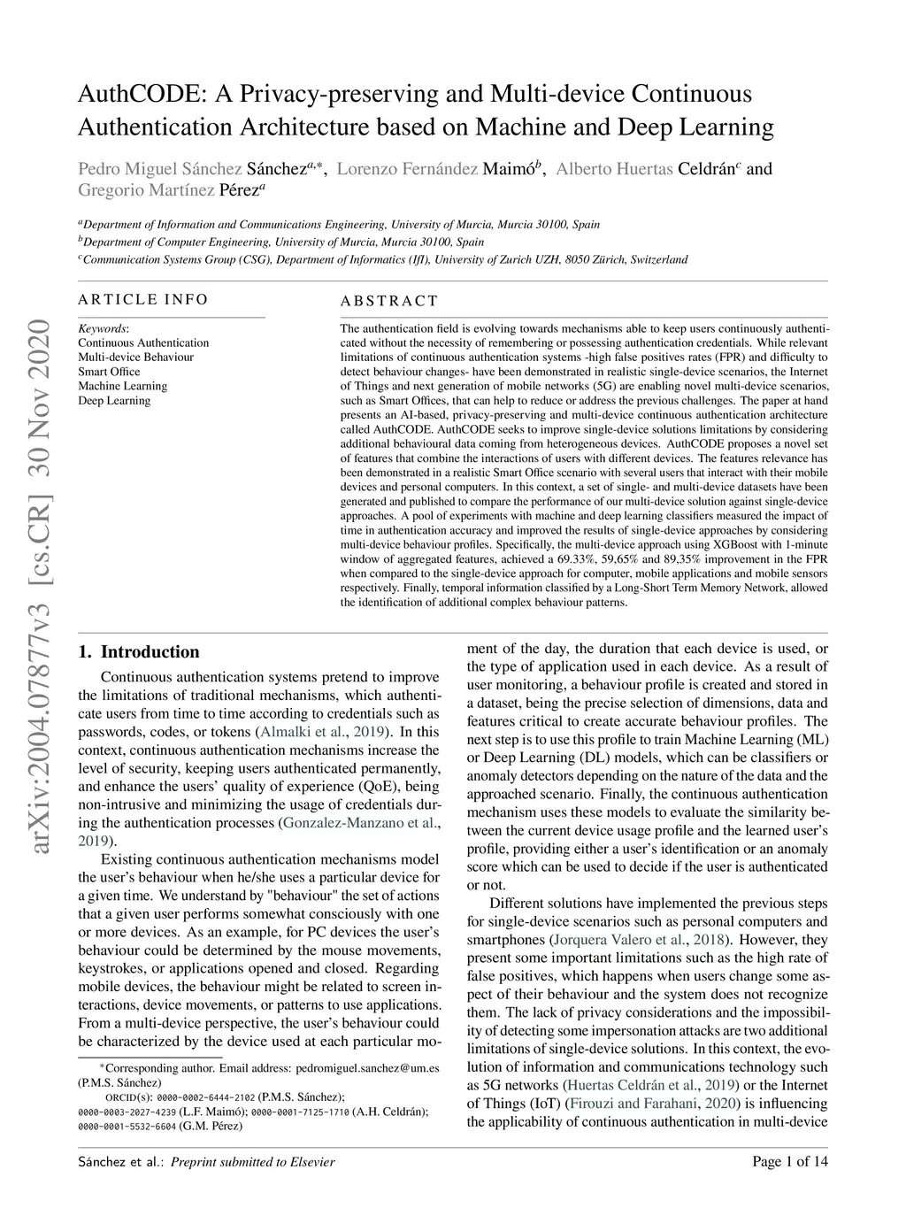 Authentication Architecture based on Machine and Deep Learning