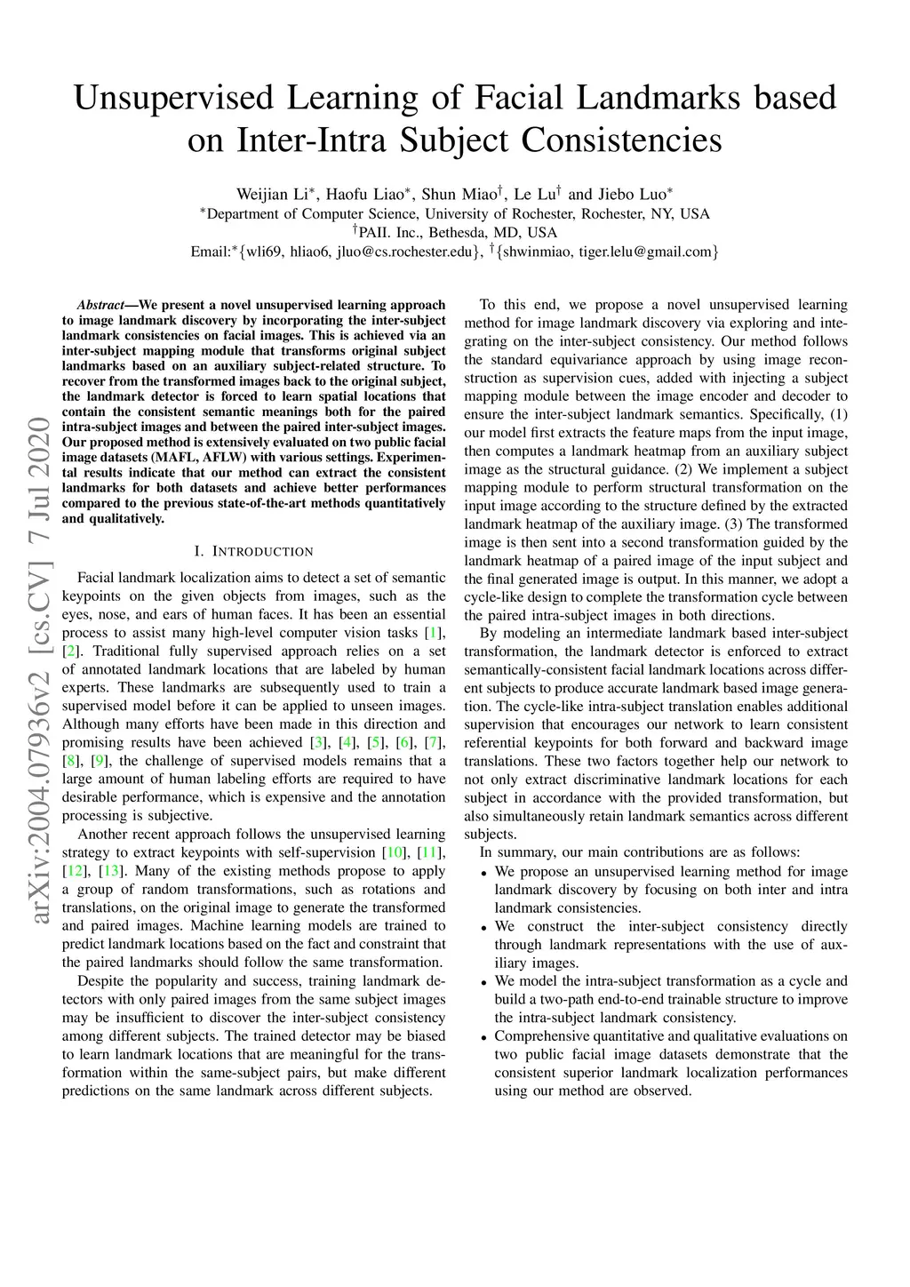 Unsupervised Learning of Landmarks based on Inter-Intra Subject