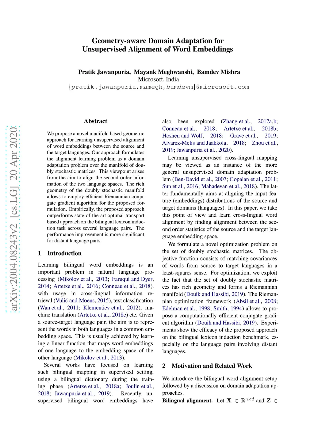 Geometry-aware Domain Adaptation for Unsupervised Alignment of Word
