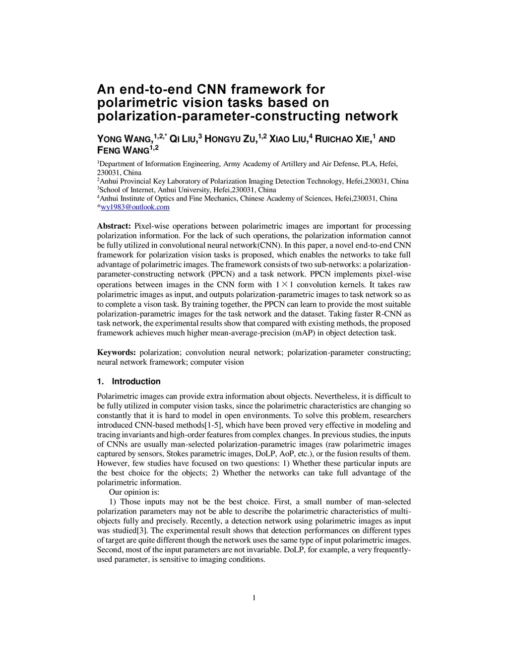 An end-to-end CNN framework for polarimetric vision tasks based on