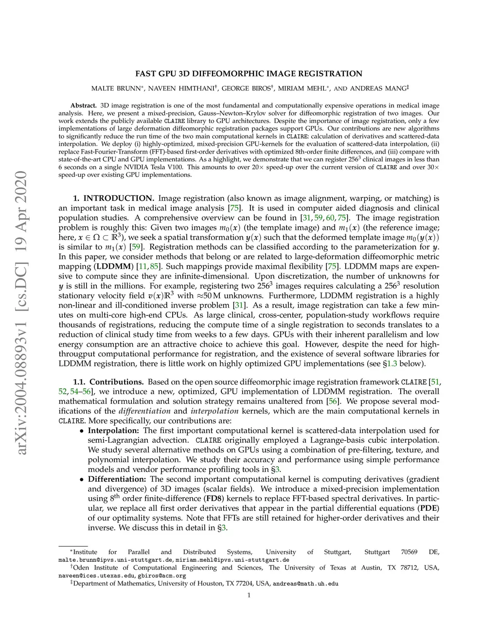 Fast GPU 3D Diffeomorphic Image Registration