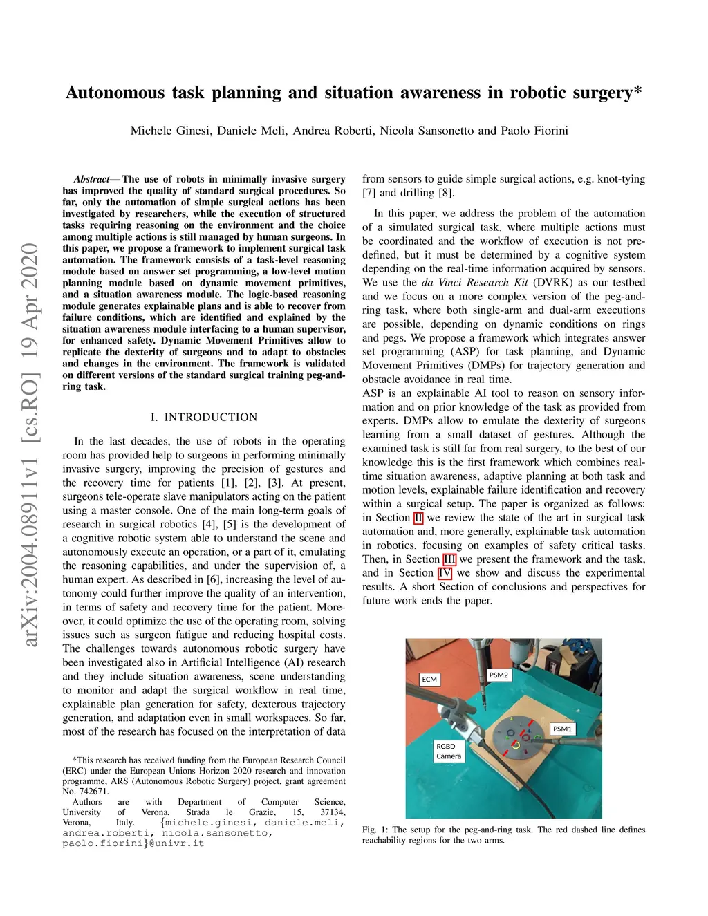 Autonomous task planning and situation awareness in robotic surgery