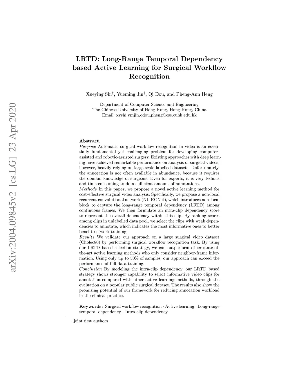 LRTD: Long-Range Temporal Dependency based Active Learning for Surgical