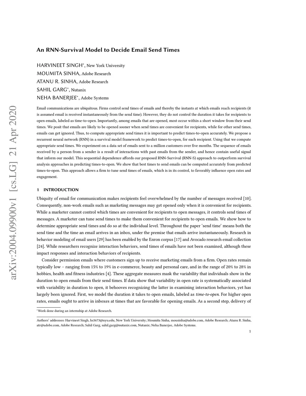 Email communications are ubiquitous. Firms control send times of emails and thereby the instants at which emails reach recipients (it is assumed email is received instantaneously from the send time). However, they do not control the duration it takes for recipients to open emails, labeled as time-to-open. Importantly, among emails that are opened, most occur within a short window from their send times. We posit that emails are likely to be opened sooner when send times are convenient for recipients, while for other send times, emails can get ignored. Thus, to compute appropriate send times it is important to predict times-to-open accurately. We propose a recurrent neural network (RNN) in a survival model framework to predict times-to-open, for each recipient. Using that we compute appropriate send times. We experiment on a data set of emails sent to a million customers over five months. The sequence of emails received by a person from a sender is a result of interactions with past emails from the sender, and hence contain useful signal that inform our model. This sequential dependence affords our proposed RNN-Survival (RNN-S) approach to outperform survival analysis approaches in predicting times-to-open. We show that best times to send emails can be computed accurately from predicted times-to-open. This approach allows a firm to tune send times of emails, which is in its control, to favorably influence open rates and engagement.