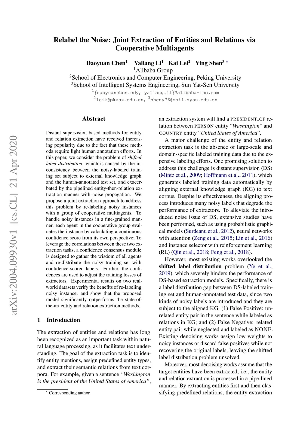 Relabel the Noise: Joint Extraction of Entities and Relations via