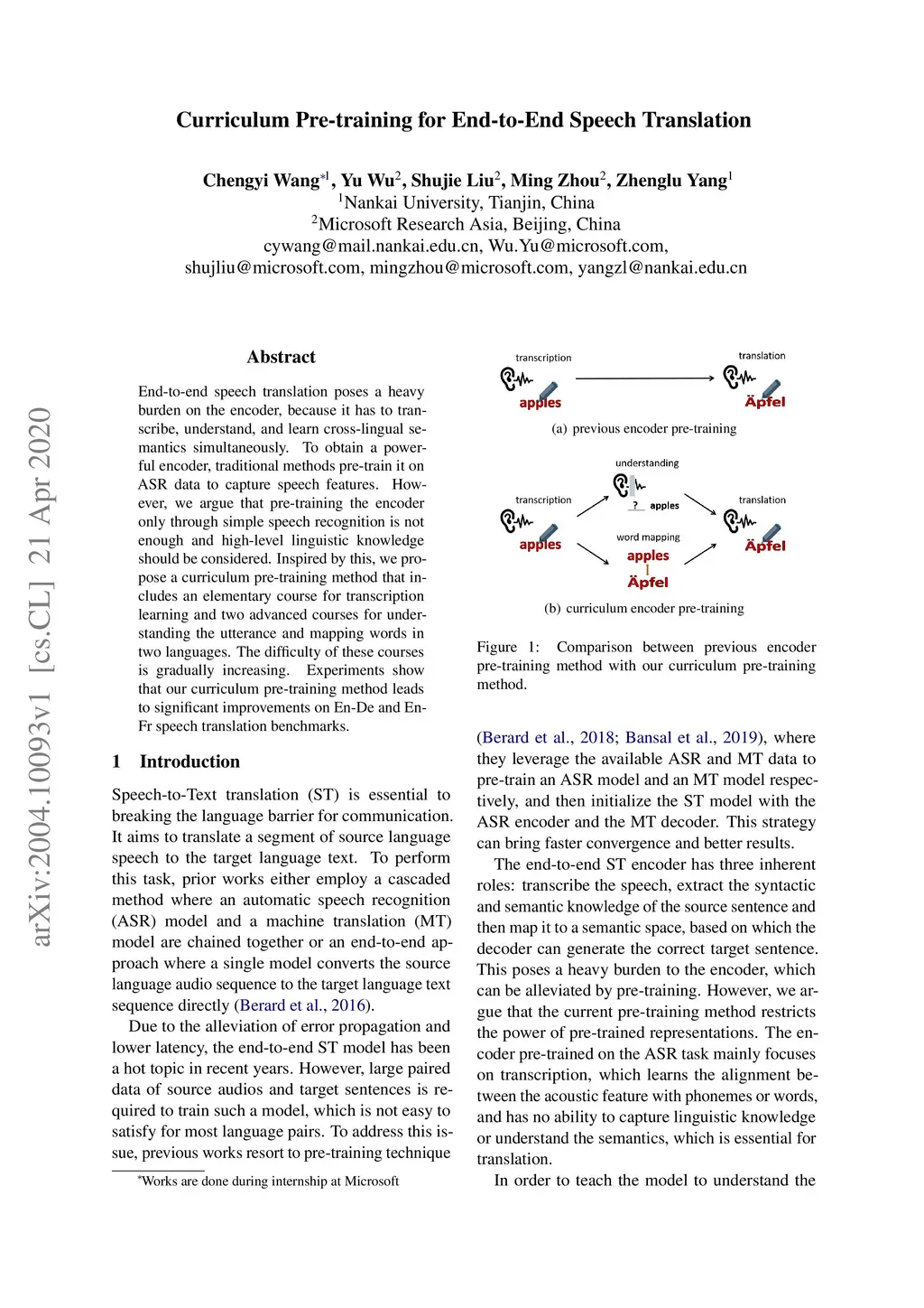 End-to-end speech translation poses a heavy burden on the encoder, because it has to transcribe, understand, and learn cross-lingual semantics simultaneously. To obtain a powerful encoder, traditional methods pre-train it on ASR data to capture speech features. However, we argue that pre-training the encoder only through simple speech recognition is not enough and high-level linguistic knowledge should be considered. Inspired by this, we propose a curriculum pre-training method that includes an elementary course for transcription learning and two advanced courses for understanding the utterance and mapping words in two languages. The difficulty of these courses is gradually increasing. Experiments show that our curriculum pre-training method leads to significant improvements on En-De and En-Fr speech translation benchmarks.