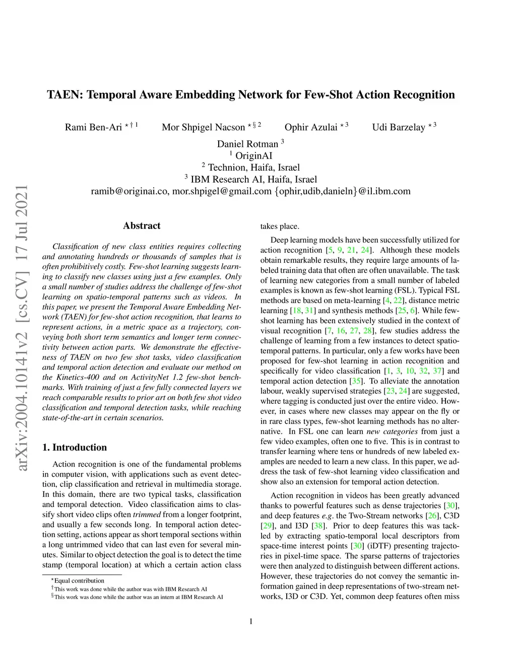 TAEN: Temporal Aware Embedding Network for Few-Shot Action Recognition