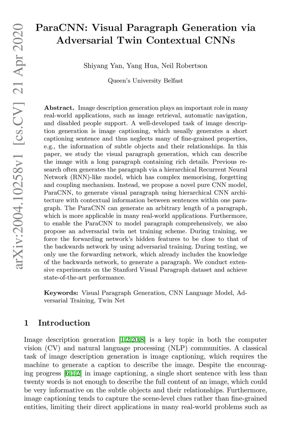 ParaCNN: Visual Paragraph Generation via Adversarial Twin Contextual