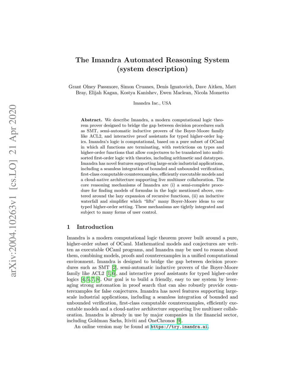 We describe Imandra, a modern computational logic theorem prover designed to bridge the gap between decision procedures such as SMT, semi-automatic inductive provers of the Boyer-Moore family like ACL2, and interactive proof assistants for typed higher-order logics. Imandra's logic is computational, based on a pure subset of OCaml in which all functions are terminating, with restrictions on types and higher-order functions that allow conjectures to be translated into multi-sorted first-order logic with theories, including arithmetic and datatypes. Imandra has novel features supporting large-scale industrial applications, including a seamless integration of bounded and unbounded verification, first-class computable counterexamples, efficiently executable models and a cloud-native architecture supporting live multiuser collaboration. The core reasoning mechanisms of Imandra are (i) a semi-complete procedure for finding models of formulas in the logic mentioned above, centered around the lazy expansion of recursive functions, and (ii) an inductive waterfall and simplifier which "lifts" many Boyer-Moore ideas to our typed higher-order setting. These mechanisms are tightly integrated and subject to many forms of user control. Imandra's user interfaces include an interactive toplevel, Jupyter notebooks and asynchronous document-based verification (in the spirit of Isabelle's Prover IDE) with VS Code.